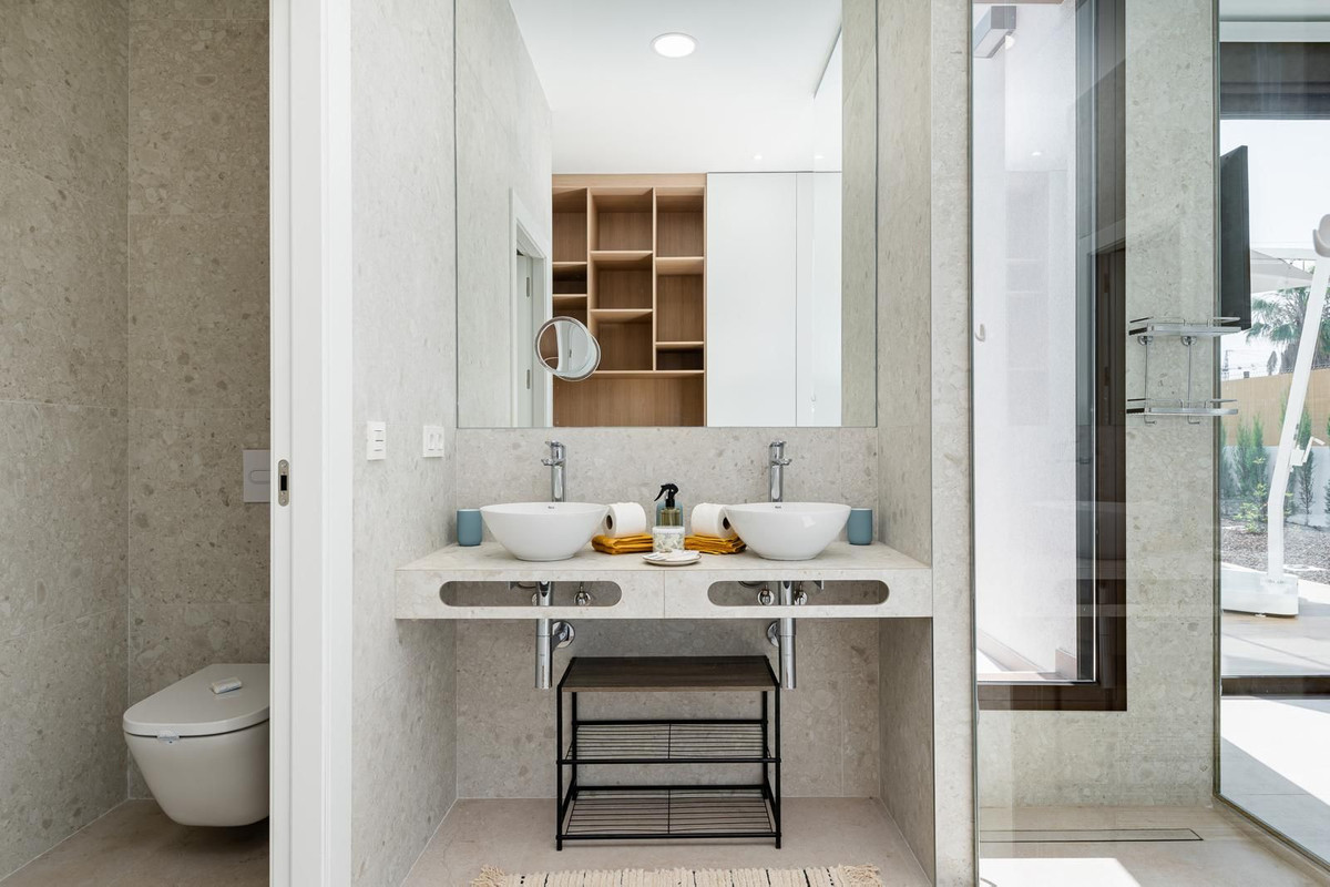 It has three spacious bedrooms, the largest of which has an en suite bathroom and direct access to the terrace and pool.