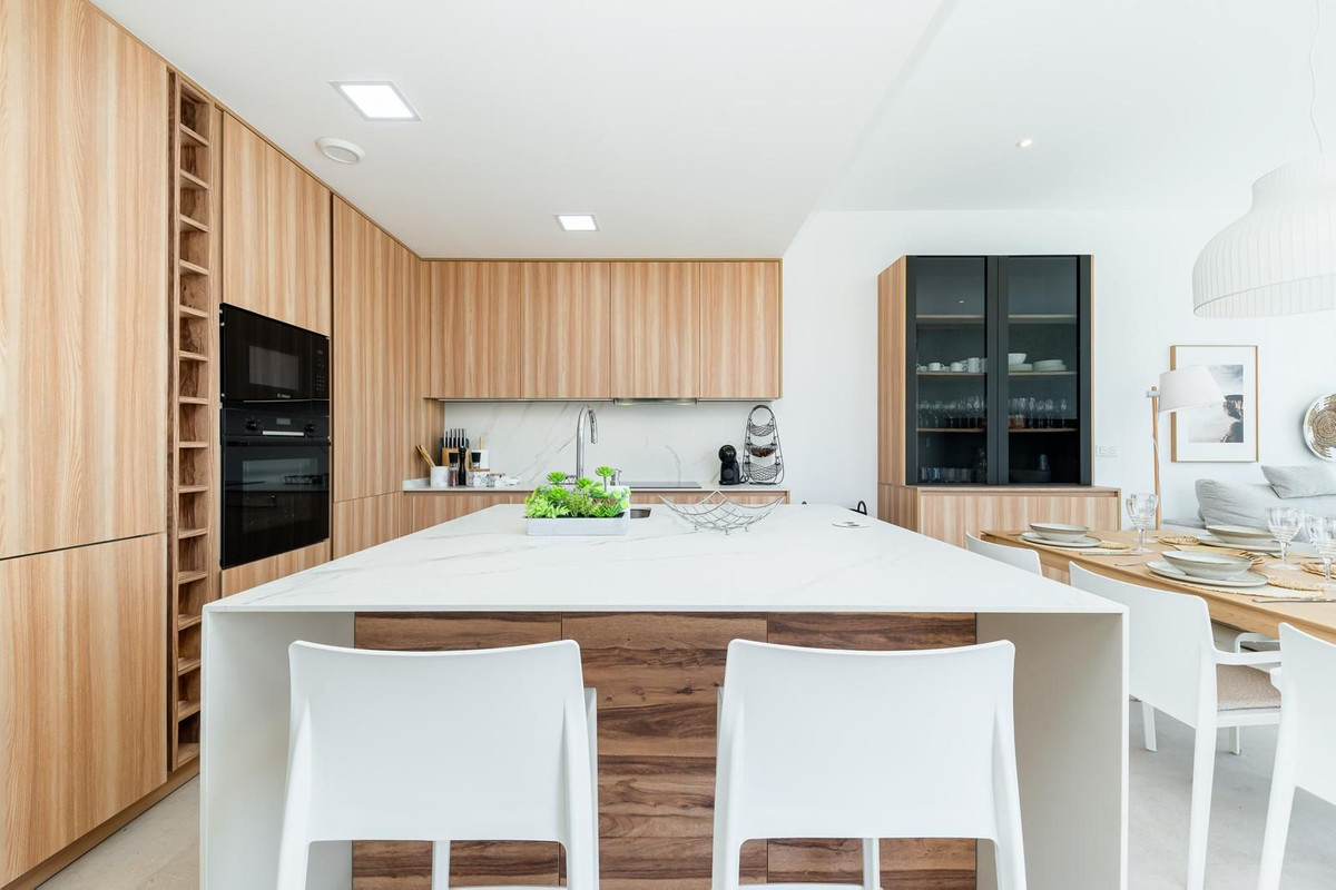 The open-plan kitchen opens onto the spacious and bright living/dining room.