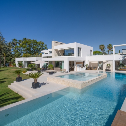 Located in the prestigious gated community of Mirador del Paraiso, this villa boasts breathtaking panoramic sea views. The property is within a very close proximity to renowned golf courses and easy access to Estepona's myriad restaurants as well as numerous amenities such as shops, a tennis club, International and Spanish schools as well as public and private health services. The beach is only a short drive away and Malaga airport is an approximate 50 mins drive.