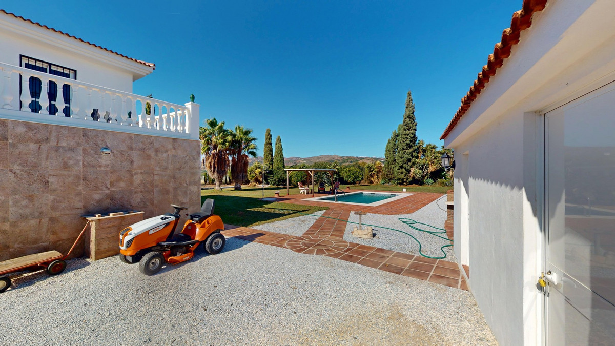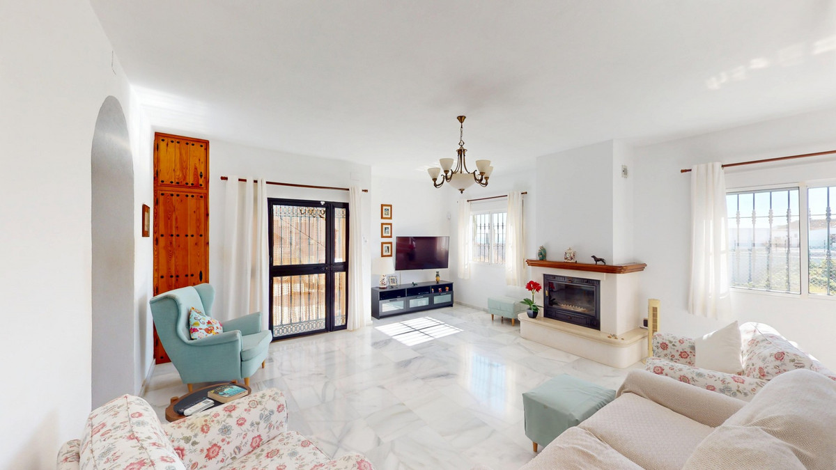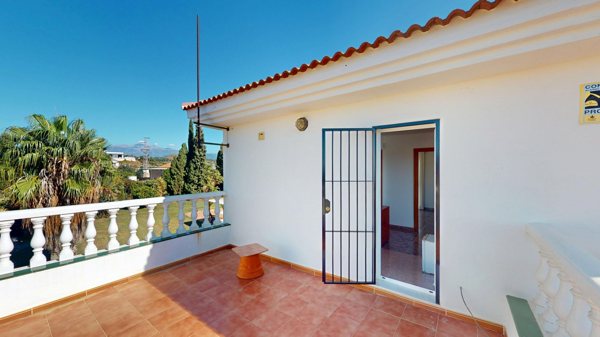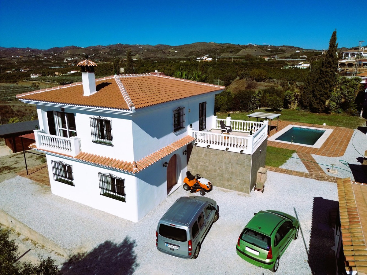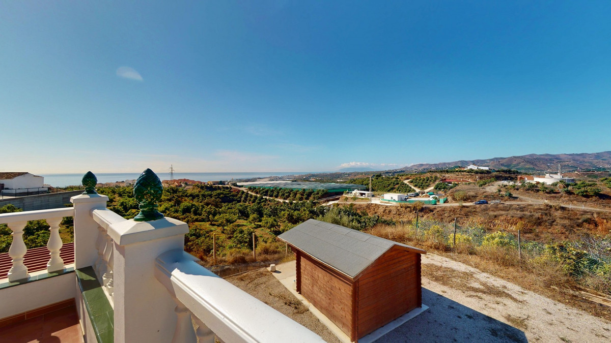 Experience the ultimate Mediterranean lifestyle in this stunning villa with guest house, located in the charming village of Almayate Alto, Málaga. Bathed in sunlight and surrounded by natural beauty, this home perfectly blends modern elegance with Andalusian charm. The main house of 181 m2 spans two levels and offers four bedrooms and two bathrooms. The ground floor features a bright living room with marble floors, a modern open-plan kitchen, and a bedroom with an adjacent bathroom ideal for guests or single-level living. Upstairs, youll find three additional bedrooms, including a spacious master suite with abundant natural light and access to one of the two rooftop terraces, where you can enjoy panoramic views of the Mediterranean Sea. On the 4,890 m2 plot, theres also a separate 27 m2 guest house fully equipped with a kitchen, bathroom, and bedroom perfect for family, friends, or rental use. Outside, a 7.5 x 4 m pool invites you to take a refreshing dip, with an adjoining terrace ideal for sunbathing or dining under the stars. The property also includes ample parking space, a wooden outbuilding suitable for multiple uses, a storage shed, and an outdoor WC. The garden is a true paradise, featuring mango and avocado trees, and open spaces that ensure both tranquility and privacy. The beach is just 10 minutes away, Torre del Mar is 15 minutes by car, and Málaga Airport can be reached in 35 minutes. This villa embodies everything that makes life in southern Spain so special: sunshine, space, stunning views, and comfort. Your very own slice of paradise on the Costa del Sol awaits. We are pleased to be able to present this dream property to you soon, either personally or via virtual viewing. Because this world is unique - just like our Axarquía. In Andalusia. On the Costa del Sol. Here, on the sunny side of life...