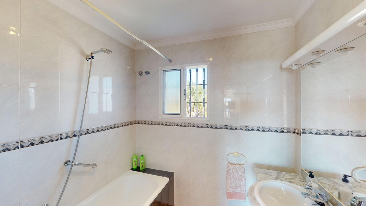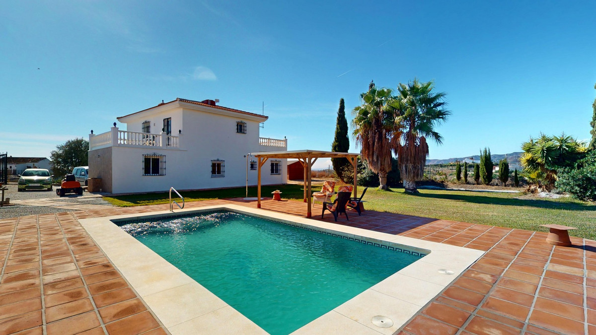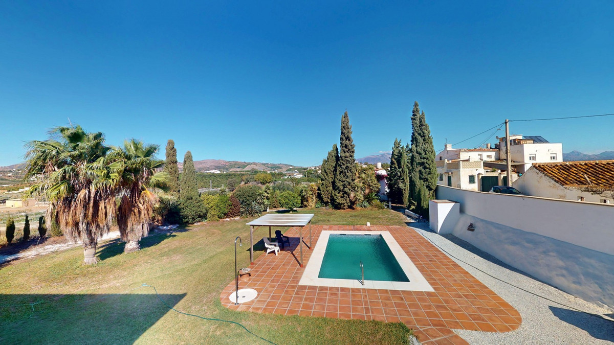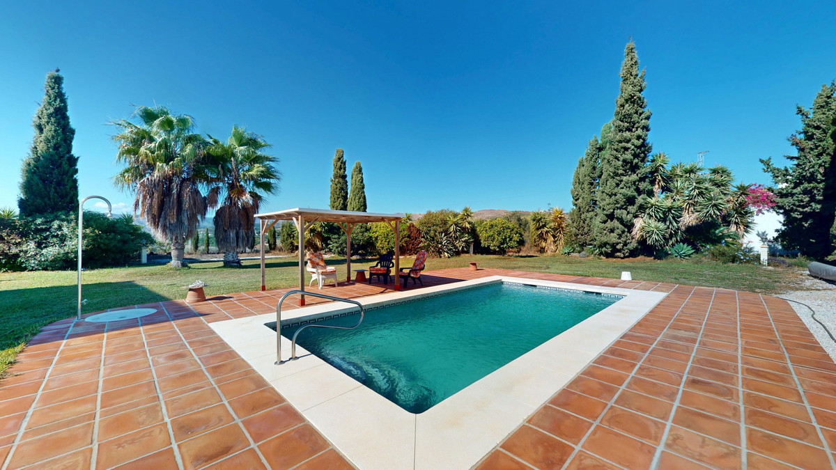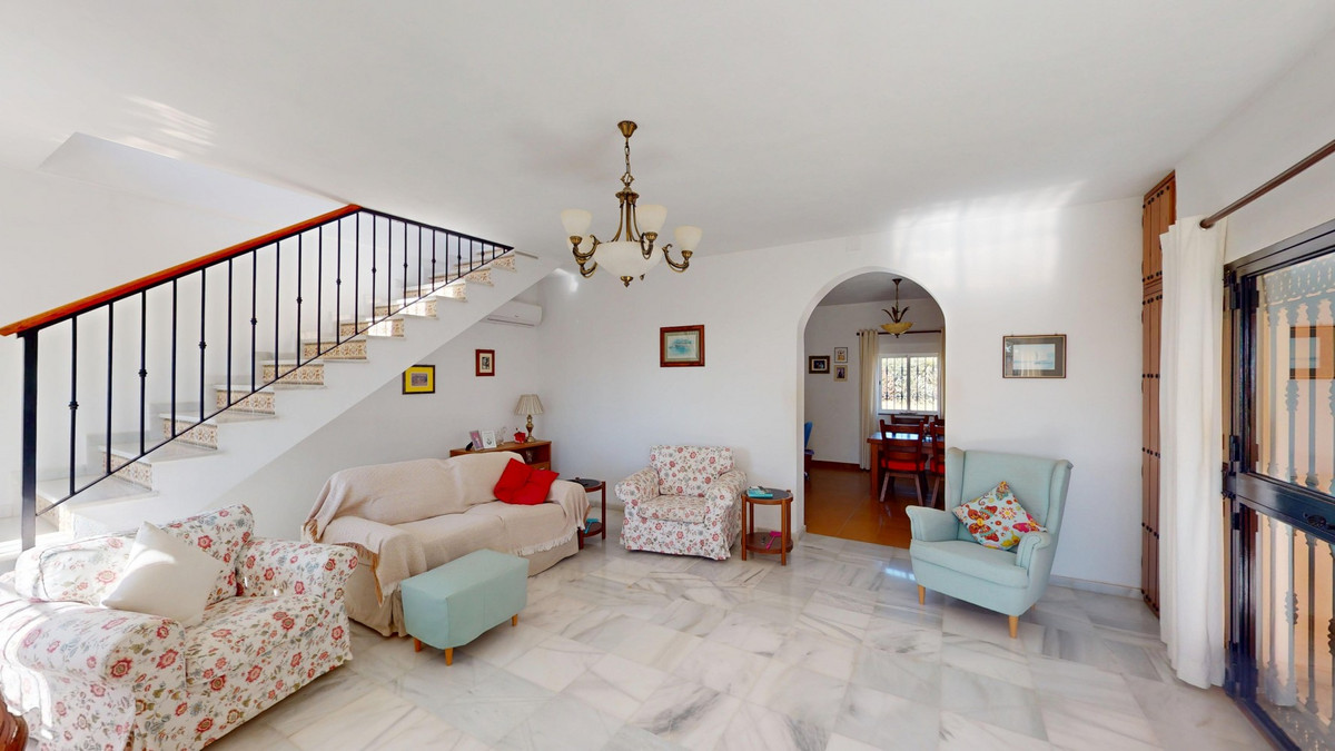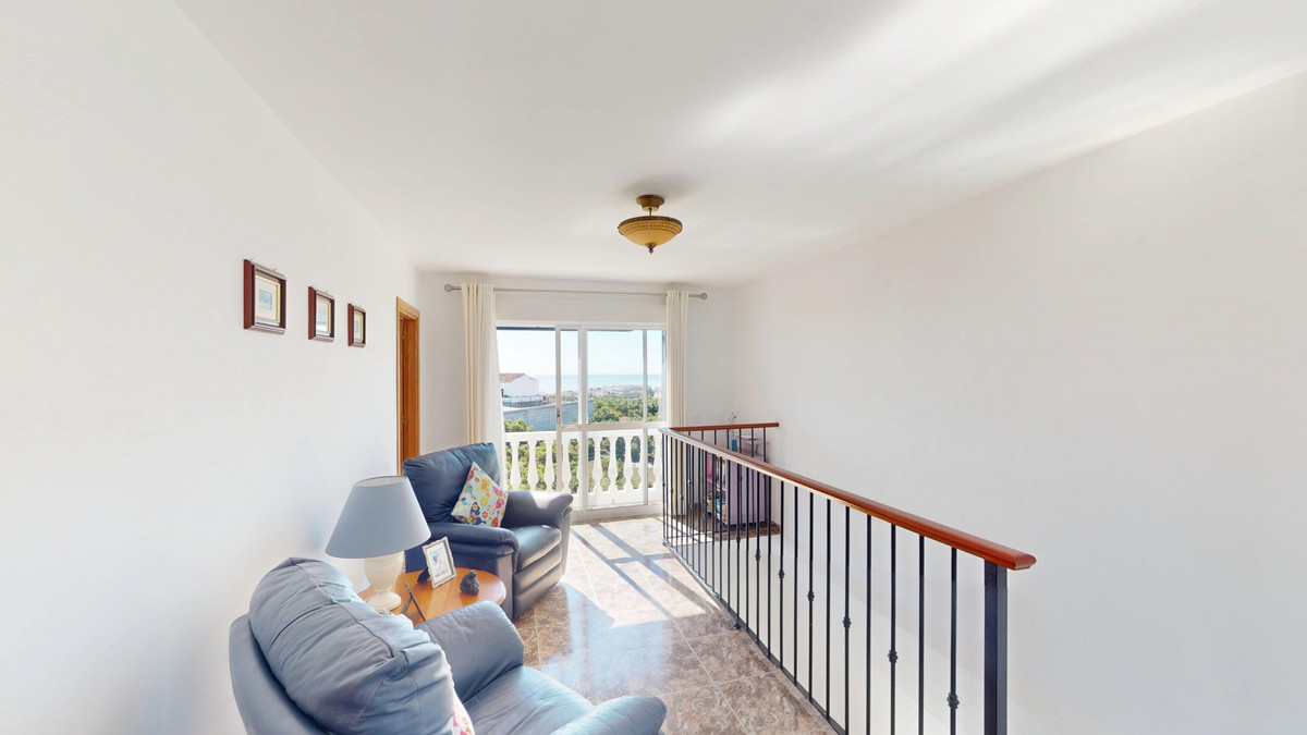 Experience the ultimate Mediterranean lifestyle in this stunning villa with guest house, located in the charming village of Almayate Alto, Málaga. Bathed in sunlight and surrounded by natural beauty, this home perfectly blends modern elegance with Andalusian charm. The main house of 181 m2 spans two levels and offers four bedrooms and two bathrooms. The ground floor features a bright living room with marble floors, a modern open-plan kitchen, and a bedroom with an adjacent bathroom ideal for guests or single-level living. Upstairs, youll find three additional bedrooms, including a spacious master suite with abundant natural light and access to one of the two rooftop terraces, where you can enjoy panoramic views of the Mediterranean Sea. On the 4,890 m2 plot, theres also a separate 27 m2 guest house fully equipped with a kitchen, bathroom, and bedroom perfect for family, friends, or rental use. Outside, a 7.5 x 4 m pool invites you to take a refreshing dip, with an adjoining terrace ideal for sunbathing or dining under the stars. The property also includes ample parking space, a wooden outbuilding suitable for multiple uses, a storage shed, and an outdoor WC. The garden is a true paradise, featuring mango and avocado trees, and open spaces that ensure both tranquility and privacy. The beach is just 10 minutes away, Torre del Mar is 15 minutes by car, and Málaga Airport can be reached in 35 minutes. This villa embodies everything that makes life in southern Spain so special: sunshine, space, stunning views, and comfort. Your very own slice of paradise on the Costa del Sol awaits. We are pleased to be able to present this dream property to you soon, either personally or via virtual viewing. Because this world is unique - just like our Axarquía. In Andalusia. On the Costa del Sol. Here, on the sunny side of life...