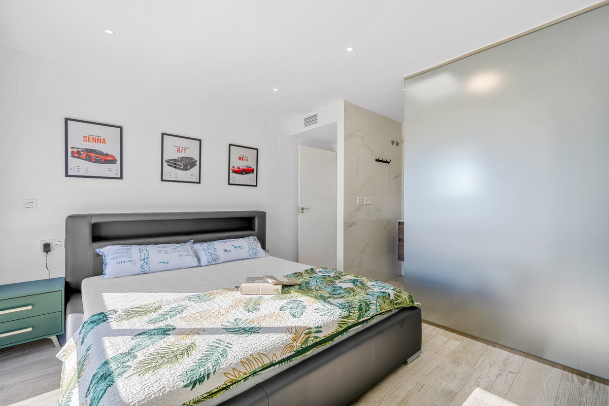 With 192 sqm of usable space, the villa features a bright and airy open-plan living area that seamlessly connects to the outdoor terrace and pool. Its southeast orientation ensures natural light throughout the day, highlighting the elegant modern finishes and tasteful décor.