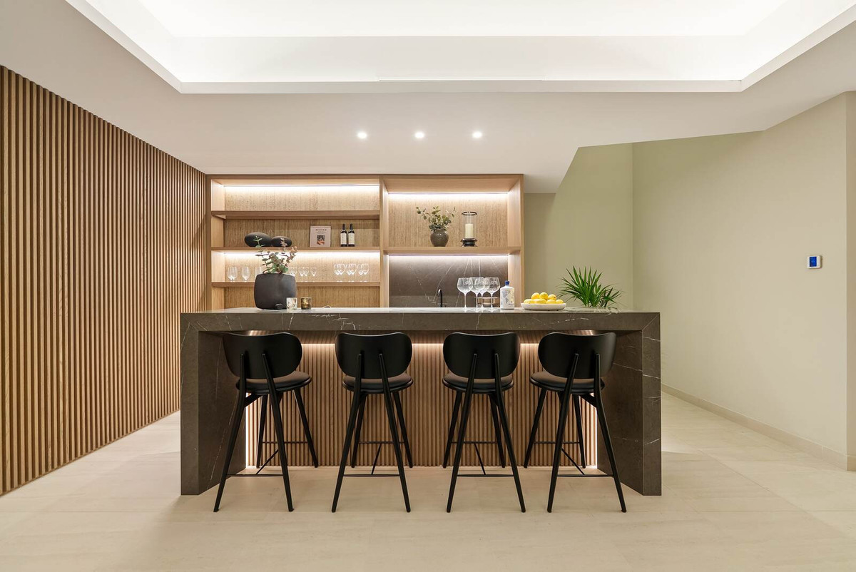 Designed to blur the boundaries between indoor and outdoor living, the residence features an expansive covered terrace ideal for dining and entertaining with family and friends. The bespoke rooftop solarium, complete with a private pool and breathtaking panoramic views over the Mediterranean Sea, Gibraltar, Africa, and Marbella's iconic La Concha mountain.
