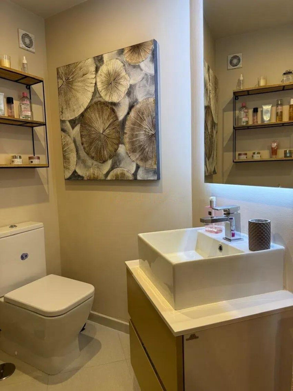 The living room and master bedroom have direct access to this outdoor space, perfect for enjoying an al fresco meal or simply gazing at the horizon. The residential complex stands out for its well-kept gardens, two large swimming pools, and peaceful surroundings, with impeccable communal areas and parking for residents. An added bonus is that the land in front of the building is not buildable, so the open sea views will always be protected. In short, a modern, bright home in an exceptional location, designed to fully enjoy the coastal lifestyle.