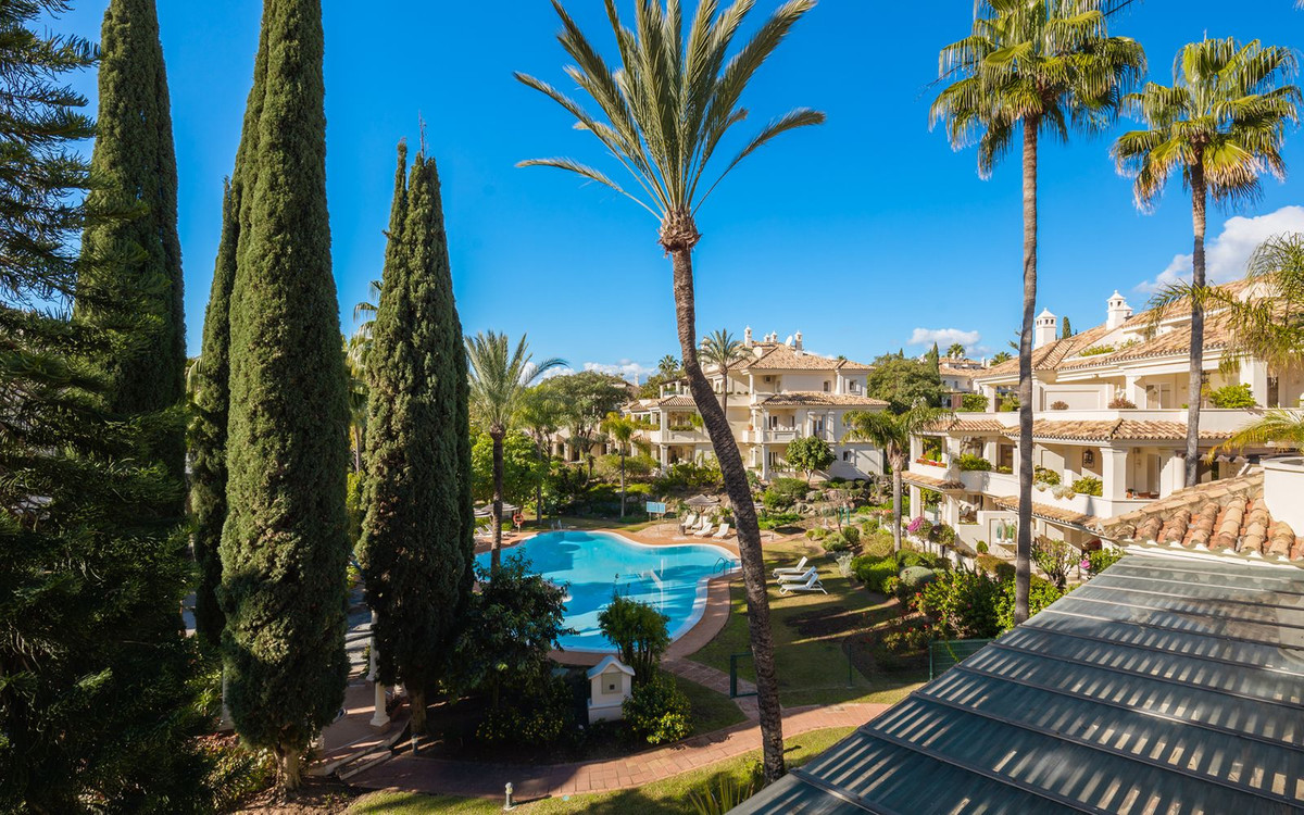 This exceptional and exquisitely designed southwest-facing duplex penthouse offers a stunning panoramic view of the award-winning gardens of Las Alamandas, in Nueva Andalucía, providing an ideal balance of sun and shade across its expansive terrace spaces. Recently refurbished to the highest contemporary standards and incorporating the latest in home automation technology, this remarkable penthouse combines the privacy, luxury, comfort, and elegance of villa living with the added prestige and appeal of residing in one of Marbella's most sought-after locations.