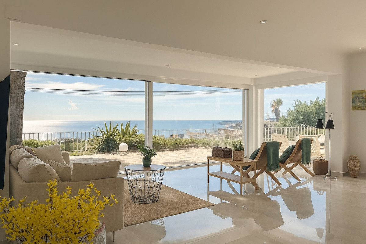 The villa is designed for comfortable year-round living, with underfloor heating, air conditioning, and plenty of natural light flowing through every room.