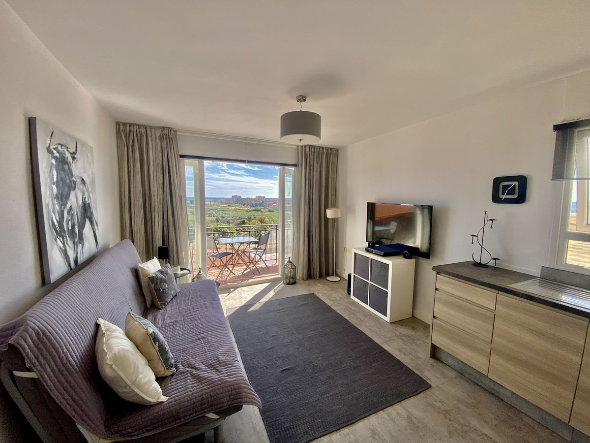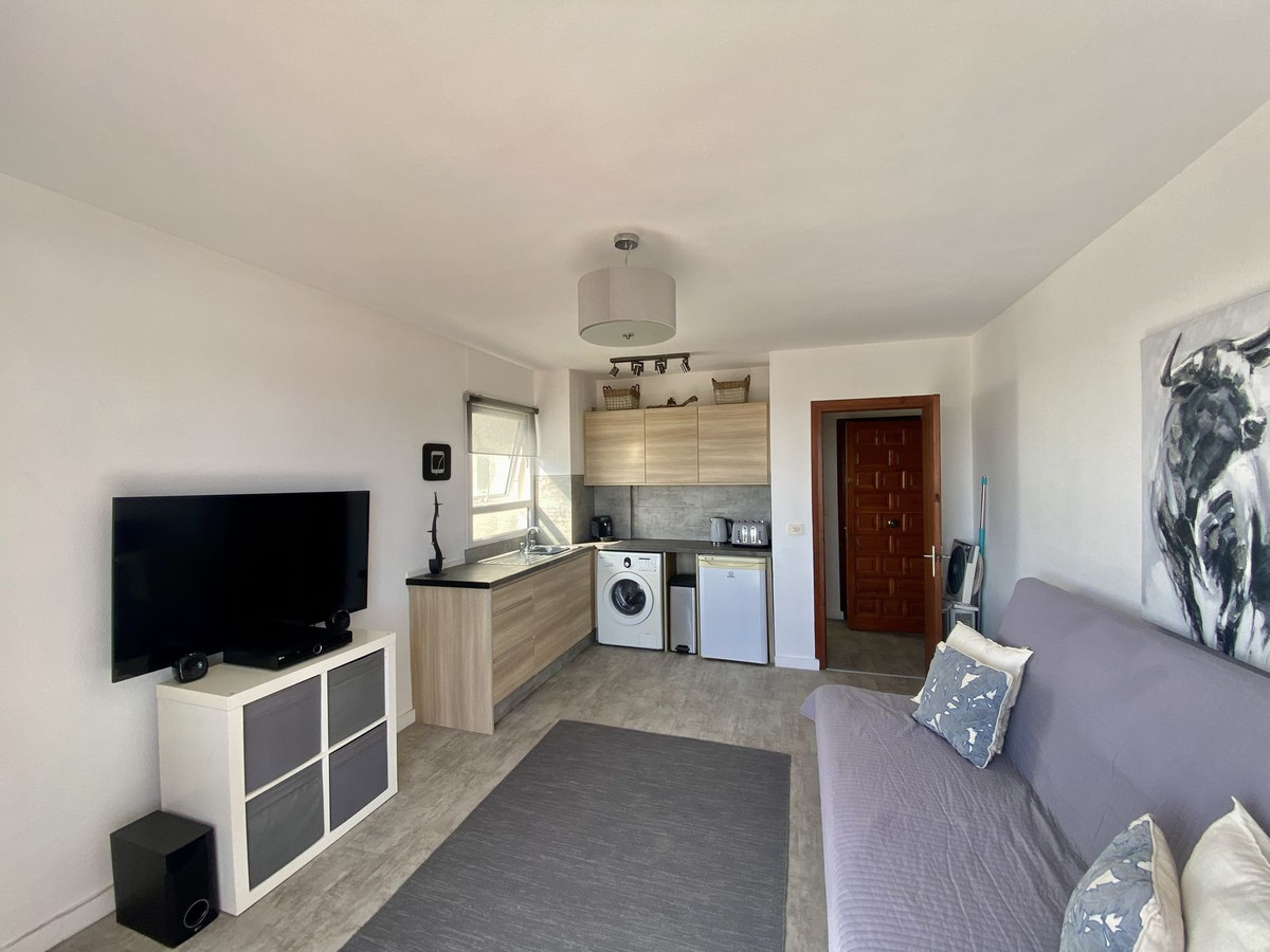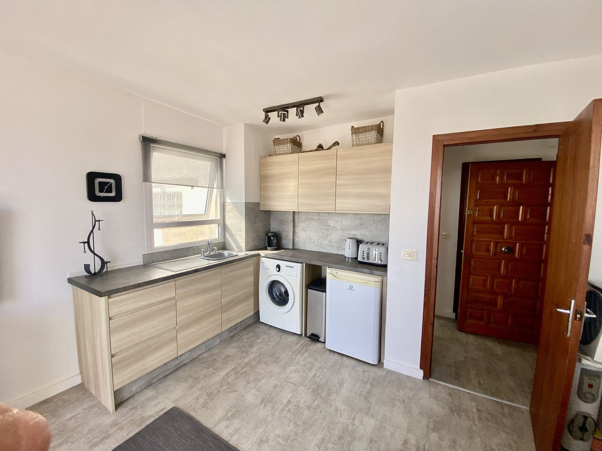 This fully furnished south facing light and homely apartment boasts mountain and sea views from all aspects including a cosy terrace leading off from the open plan lounge/ Kitchen. Upgraded fully double glazed UPVC doors and windows, Modern kitchen with white goods, fully fitted Bathroom with large shower, sink & W/C and Double bedroom.