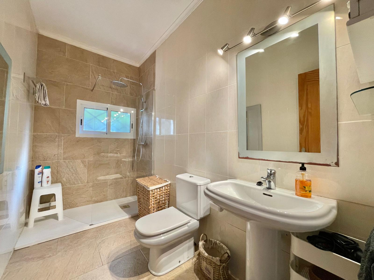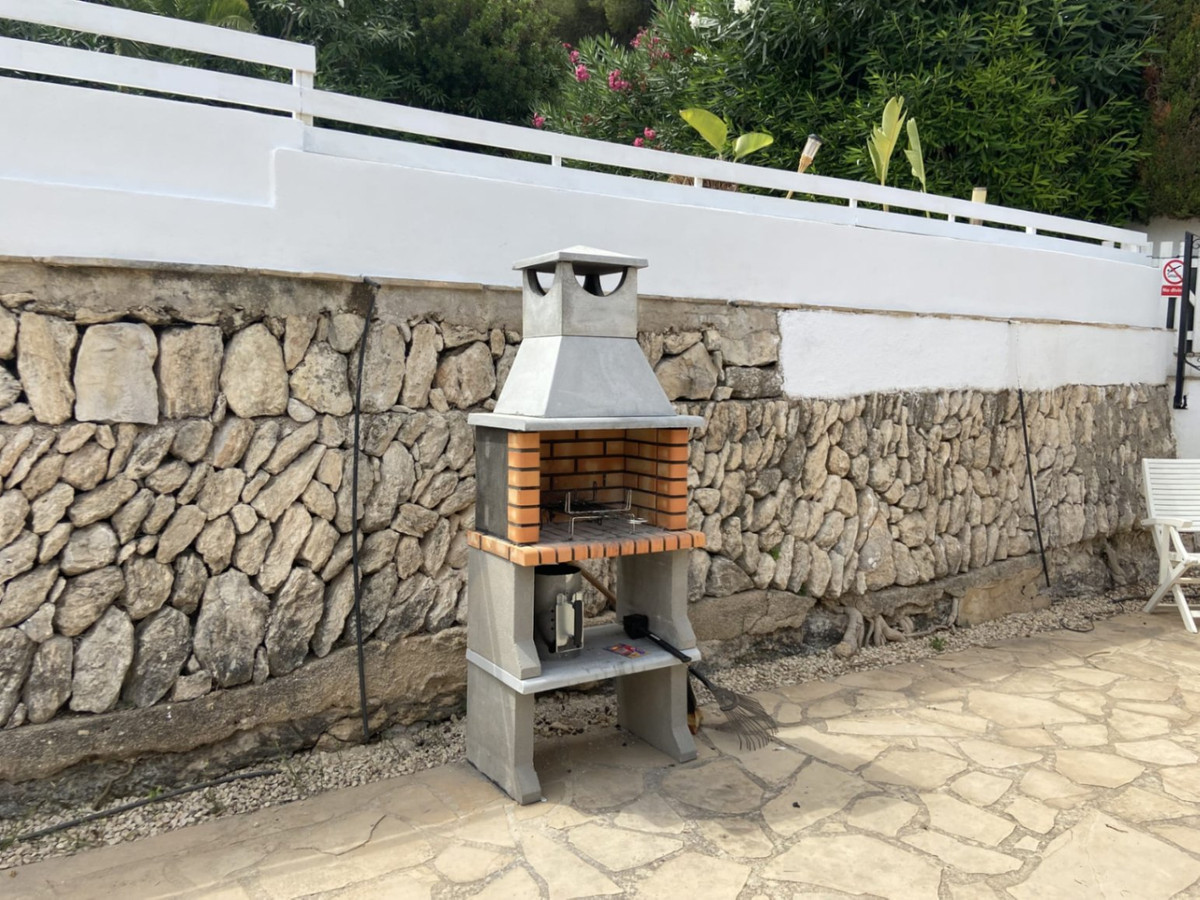 Outside, the villa surprises with a charming covered terrace with a bar area, ideal for gatherings with friends or sunset evenings, connected by stairs to a beautiful illuminated pool that invites you to relax in total privacy. Additionally, there is access to a sunny rooftop with the potential to install a jacuzzi, from which you can contemplate the impressive Montgó. Another garden terrace, also accessible from the living room, provides even more outdoor enjoyment options.