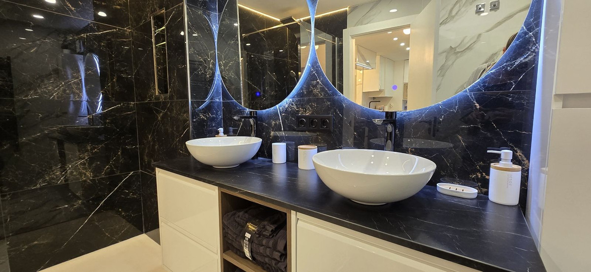 The apartment comprises an open-plan living room with media wall and sliding doors opening to a West facing terrace overlooking the pool. The kitchen is new and includes all the appliances. There are two double bedrooms with fitted wardrobes, ceiling fans and juliet balconies, plus a re-fitted bathroom.