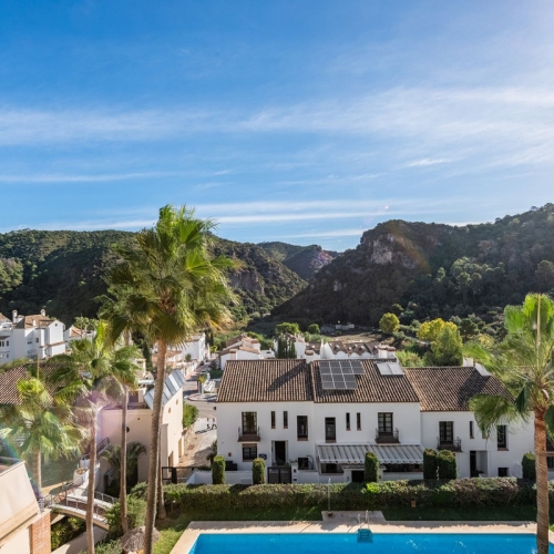 Located in the prestigious residential complex El Casar, right in the heart of Benahavís village, this elegant three-bedroom, three-bathroom townhouse offers an exceptional blend of comfort, style, and Mediterranean living.
