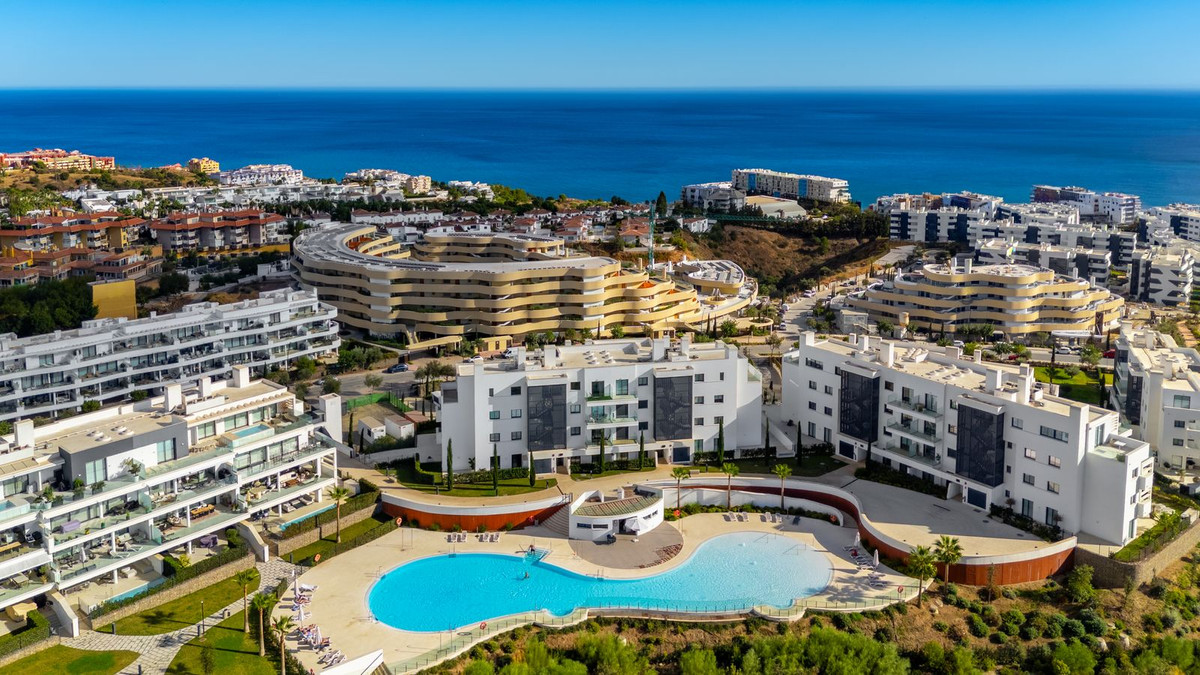 Luxury west facing apartment, in the exclusive urbanization of Higuerón West, with 3 bedrooms, 2 bathrooms, spacious living-dining room, open plan kitchen fully furnished and equipped with electricial appliances from Bosch including american fridge/freezer and wine cooler, laundry area with washing machine/dryer, large terrace of 54m2 with garden views. Master bedroom with walk-in closet, open plan bathroom and access to a small terrace of 5m2. Air conditioning hot and cold, video intercom, domotic system, built-in wardrobes in all bedrooms and hall entrance, electric awnings on main terrace and electric curtains in living room, pre-installation alarm system, floor heating in both bathrooms. Includes two parking spaces and one storage room.