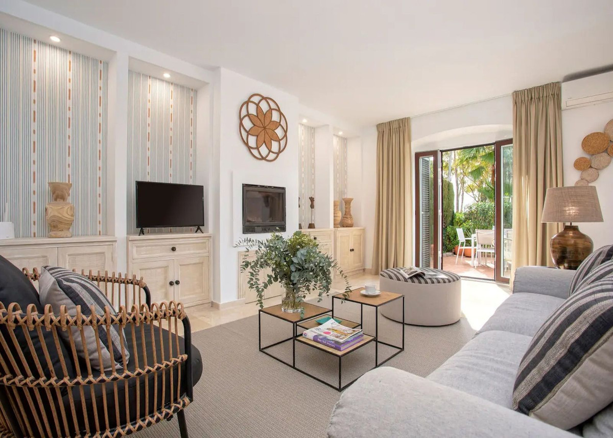Just steps from the sea, this beautifully renovated townhouse is located in the highly sought-after Laguna Beach urbanization in Estepona.