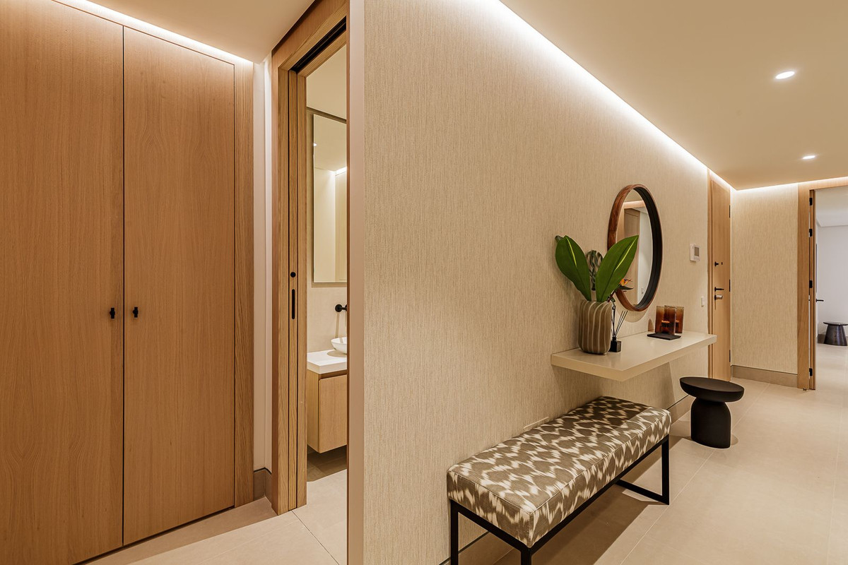 The building, completed in 2024, has a 24-hour reception/concierge, an impressive rooftop pool on the 21st floor with a bar for residents use, heated indoor pool with solarium, free outdoor pool with separate solarium and Balinese beds, a spa area that incorporates another indoor pool