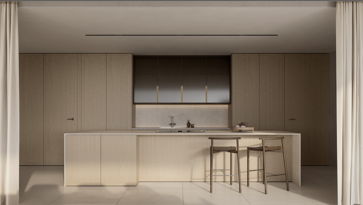 The villa's 5 luxurious bedroom suites each feature their own en-suite bathrooms, creating private retreats for family and guests, while two additional guest toilets add convenience. The heart of the home is an impressive open-plan living and dining area that flows into a designer kitchen equipped with top-of-the-line Miele appliances. Rich natural wood and stone finishes bring warmth to the space, while oversized windows flood the interiors with natural light and perfectly frame the surrounding scenery.