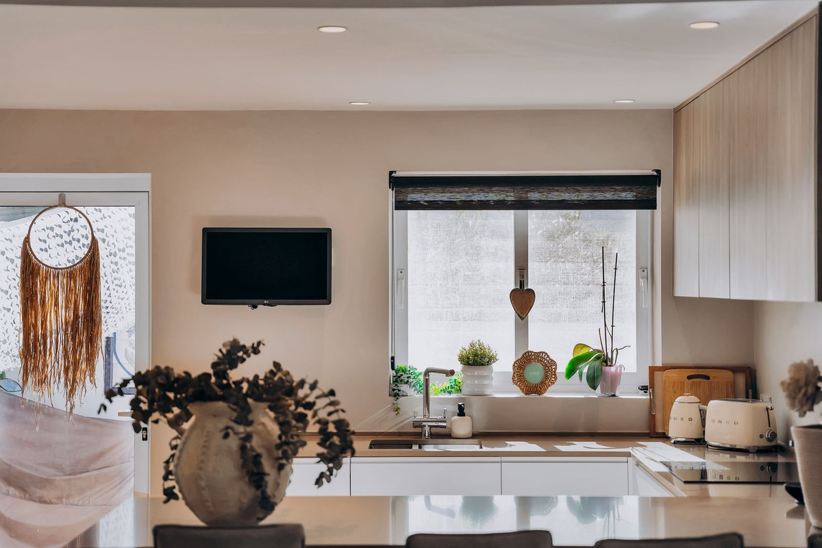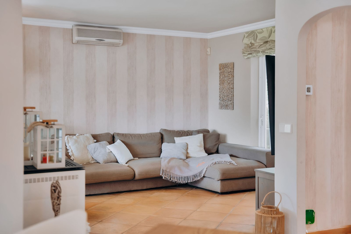 The villa sits entirely on one level—no stairs, no split levels—making movement throughout the home exceptionally easy and ideal for all ages. It is in excellent condition and equipped with modern features, including solar panels for hot water, a reinstallation prepared for underfloor heating, and a cosy pallet heating system for cooler months.