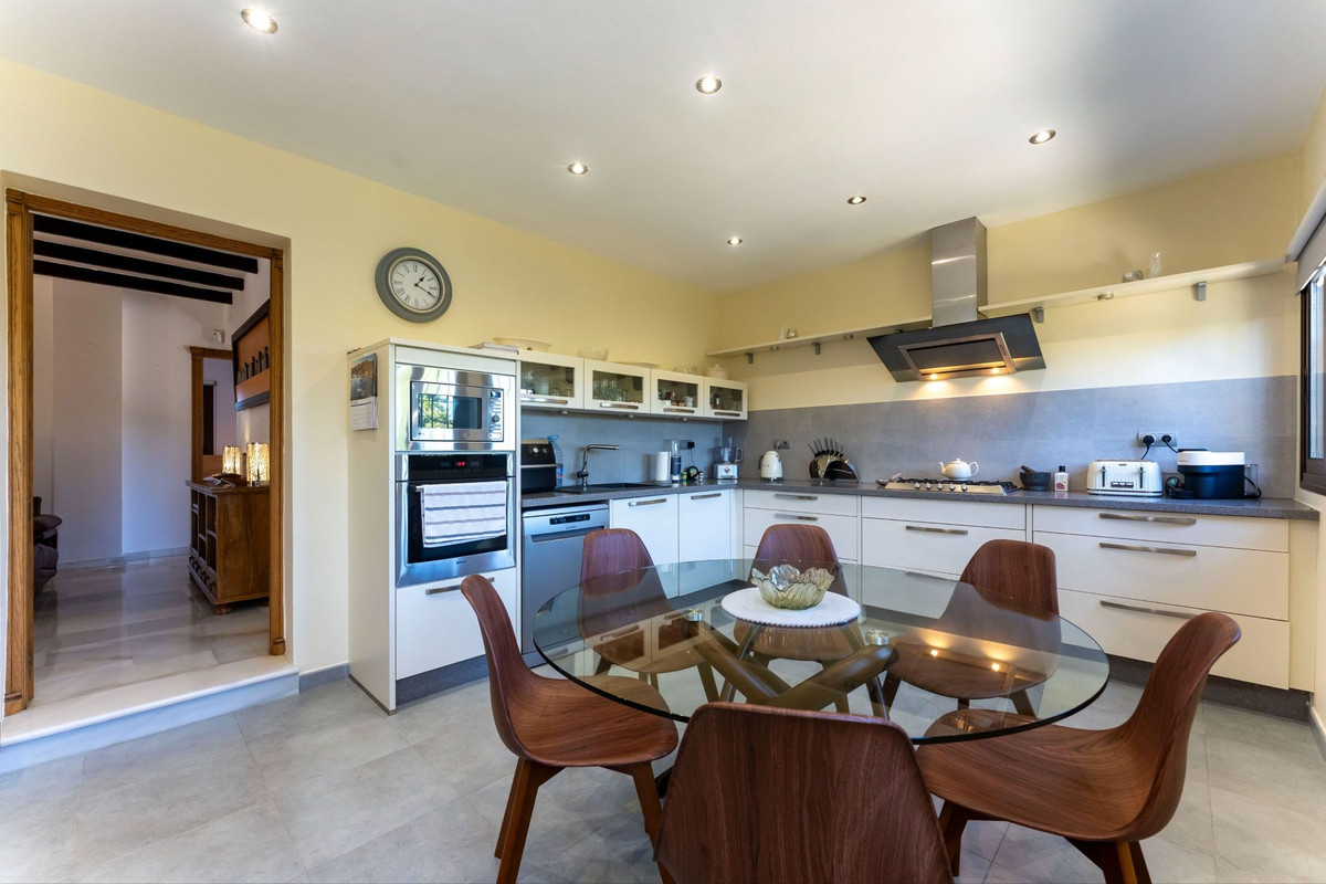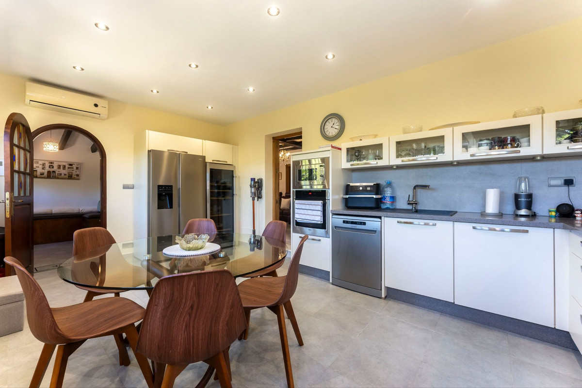 This beautiful single-story villa is perfectly located on the northwest side of Alhaurín el Grande, offering excellent access and just a short walk from the village center and local bus stop. Presented in immaculate condition, the property enjoys abundant natural light and a comfortable, functional layout. It features a spacious fully fitted kitchen with breakfast area, a bright living room with fireplace, and three generous bedrooms, including a master suite with en-suite bathroom plus an additional family bathroom. There is also a dedicated office/study, which could easily be converted into a fourth bedroom if desired.
