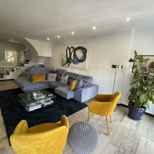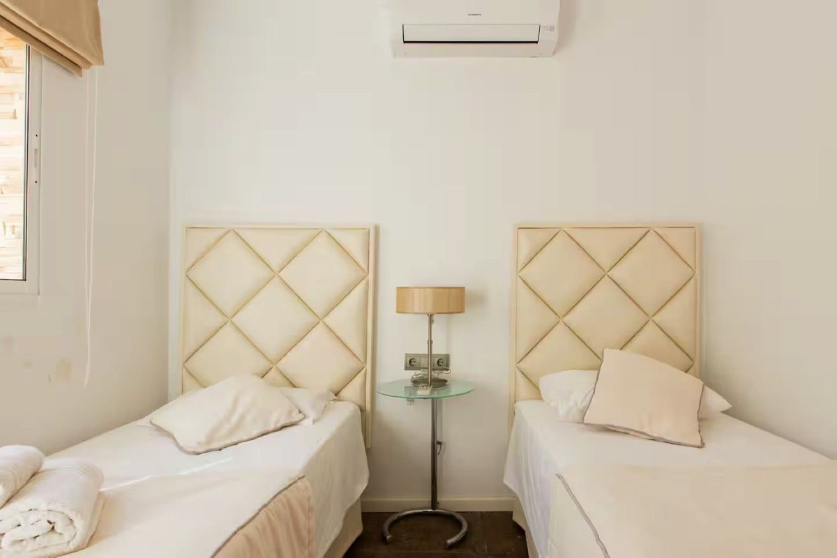 Spanning three levels across 166 m² of built space, this south-facing gem boasts abundant natural light and a versatile layout perfect for large families or holiday rentals. The ground floor features a welcoming living-dining area with a cosy fireplace and parquet flooring, a fully equipped kitchen, and access to a private terrace and balcony for al fresco enjoyment. Upstairs, five generous bedrooms with fitted wardrobes provide ample space, complemented by three modern bathrooms. With air conditioning throughout and a proven track record as a high-yield investment—generating approximately €50,000 for the summer months alone through short-term lets—this property promises excellent returns in Nueva Andalucía's booming rental scene, where 5-bedroom townhouses can fetch €25,000+ monthly in peak season.