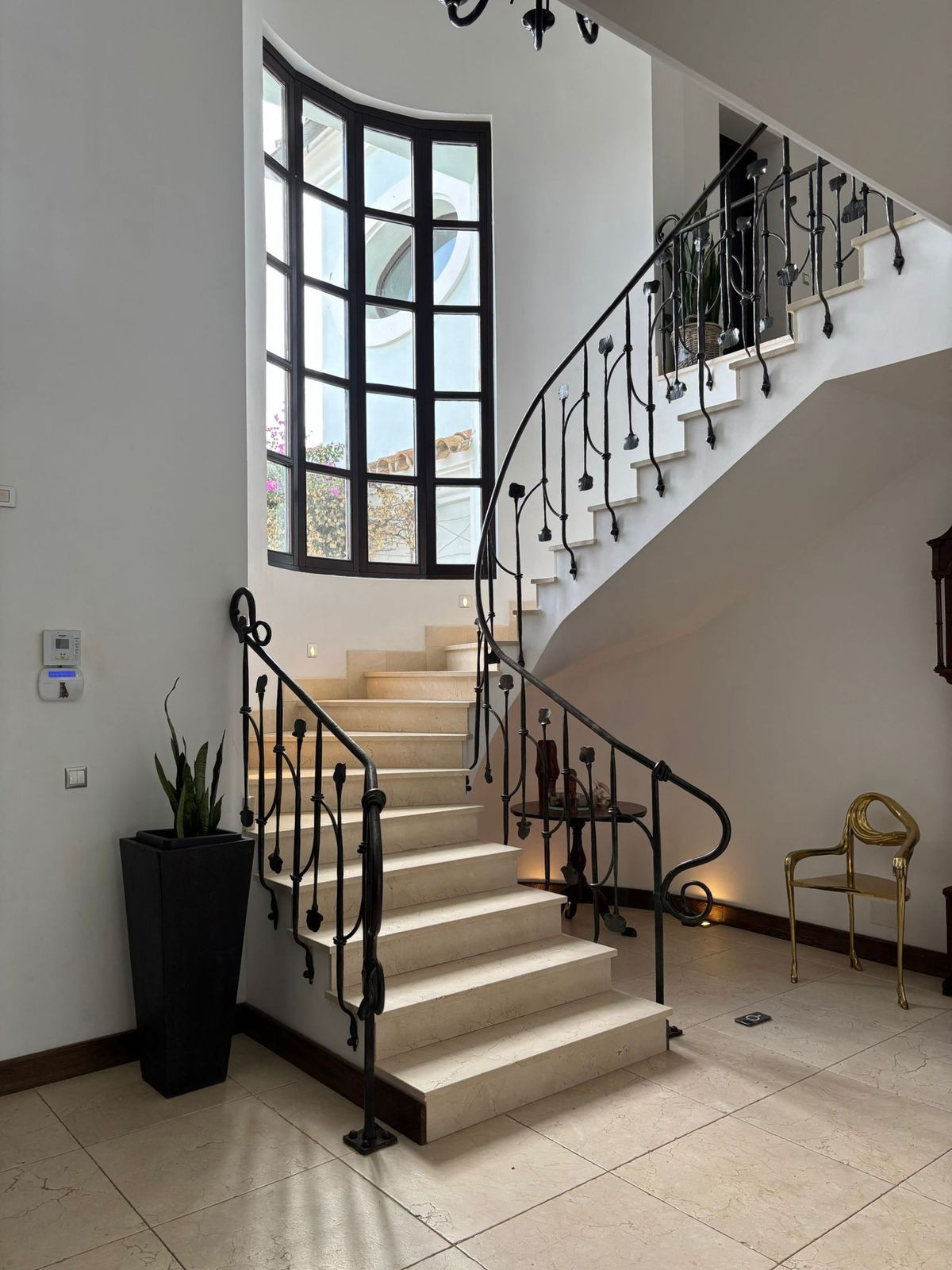 Stunning villa located in the prestigious San Roque Club urbanization, one of the best golf courses in Andalusia, with private access and 24-hour security, including a guardhouse and security officer throughout the development. This magnificent villa boasts unobstructed views of the golf course and mountains. Situated on a 2,250 m² plot with a 600 m² built area, it is distributed over three floors. It comprises six spacious bedrooms, each with an en-suite bathroom and dressing room. One of the bedrooms also features a Turkish bath. The grand living room is spectacular, opening onto the garden and swimming pool. The immense kitchen is equipped with luxurious details and Miele appliances. The dining room is conveniently located adjacent to the kitchen, and there is also a large room dedicated to an exclusive wine cellar. A separate apartment with its own kitchen is also included on the ground floor. The garden area features a chill-out zone, a pool table, a dining area, a barbecue, a fully enclosed gym, and an enormous 12x6 meter swimming pool! At the rear, there's a closed garage for two cars and additional parking space outside but still within the private property. This villa also features underfloor heating and a Sonos sound system. Your dream villa is available for viewing.