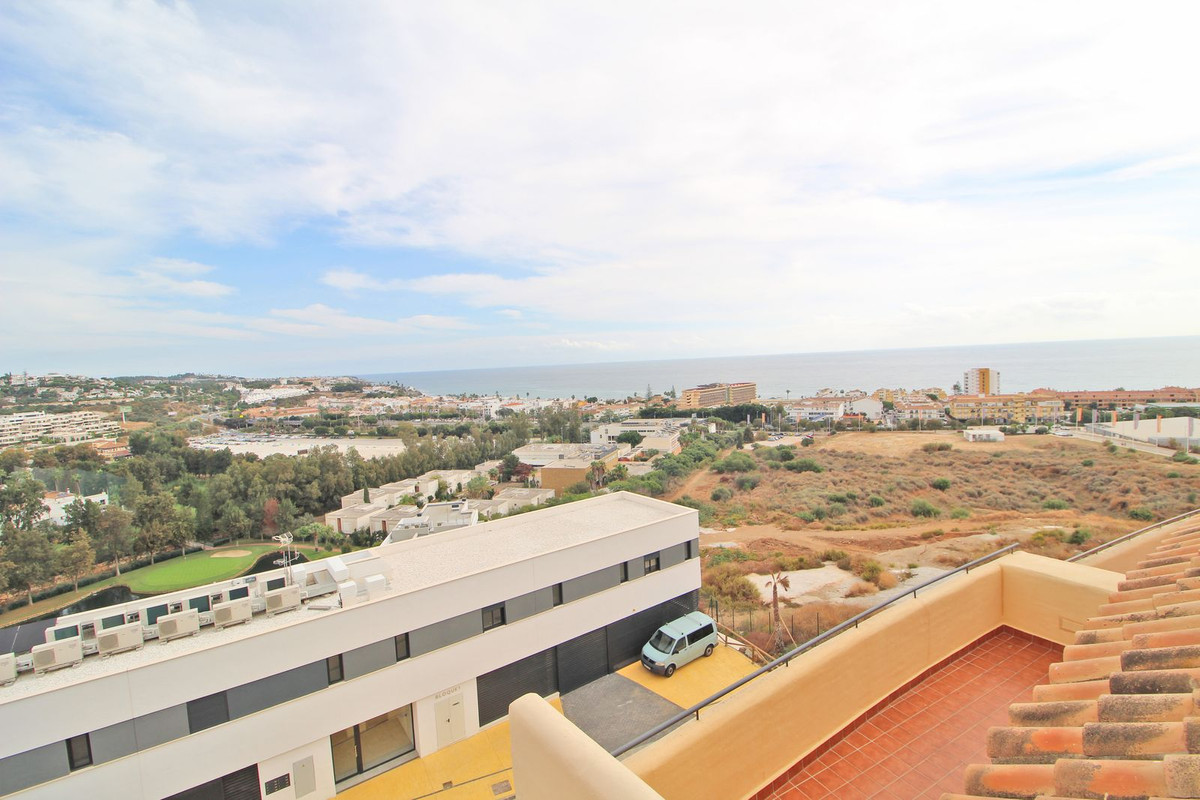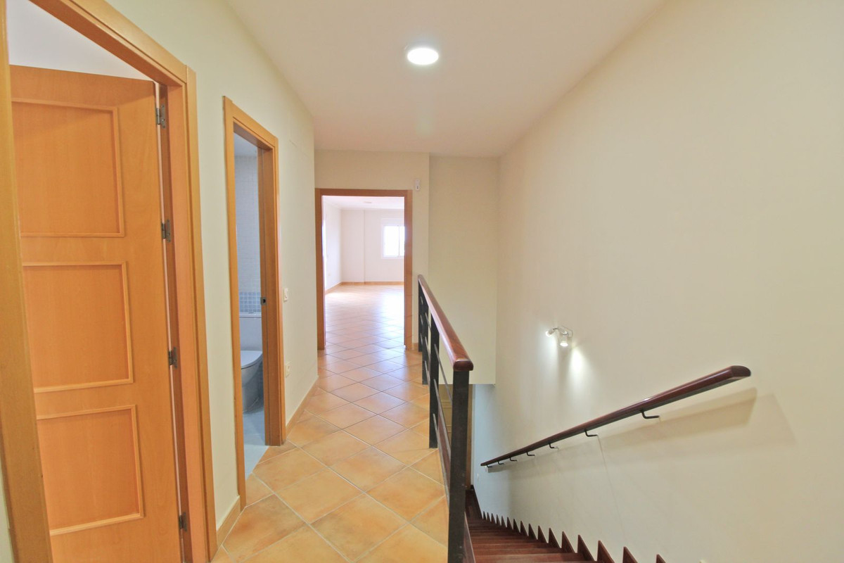 Townhouse in Mijas, a 5-minute drive to all amenities. The house boasts beautiful sea, golf, and mountain views. The property is distributed over two floors plus a solarium. On the entrance floor, there is a large living room with access to the terrace overlooking the sea, kitchen (not fitted), guest bedroom, and a bathroom.