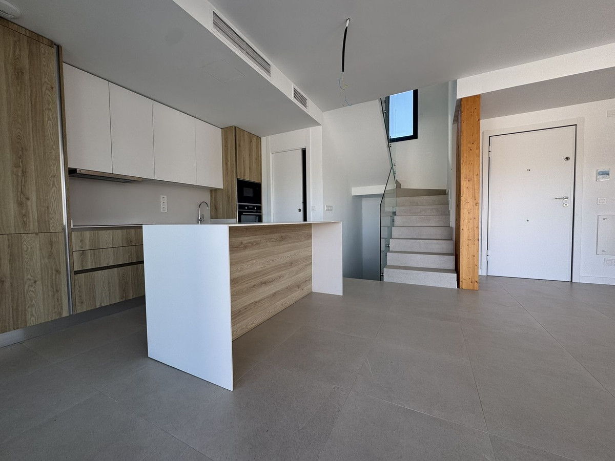 Brand-new contemporary 4-bedroom semi-detached townhouse located in the exclusive Atalaya Golf area, perfectly positioned between Marbella and Estepona. This never-before-lived-in home features a private driveway with parking, a stunning open-plan living space with a fully equipped modern kitchen, three bedrooms and two bathrooms on the main levels, plus an additional en-suite bedroom in the basement. The bright and spacious living room opens onto a west-facing terrace and private garden, ideal for enjoying the afternoon sun. A spectacular rooftop solarium offers breathtaking mountain views, creating the perfect setting for entertaining or relaxing. Within walking distance to local amenities, this property represents a unique opportunity to own a stylish modern home in one of the Costa del Sol's most sought-after locations.