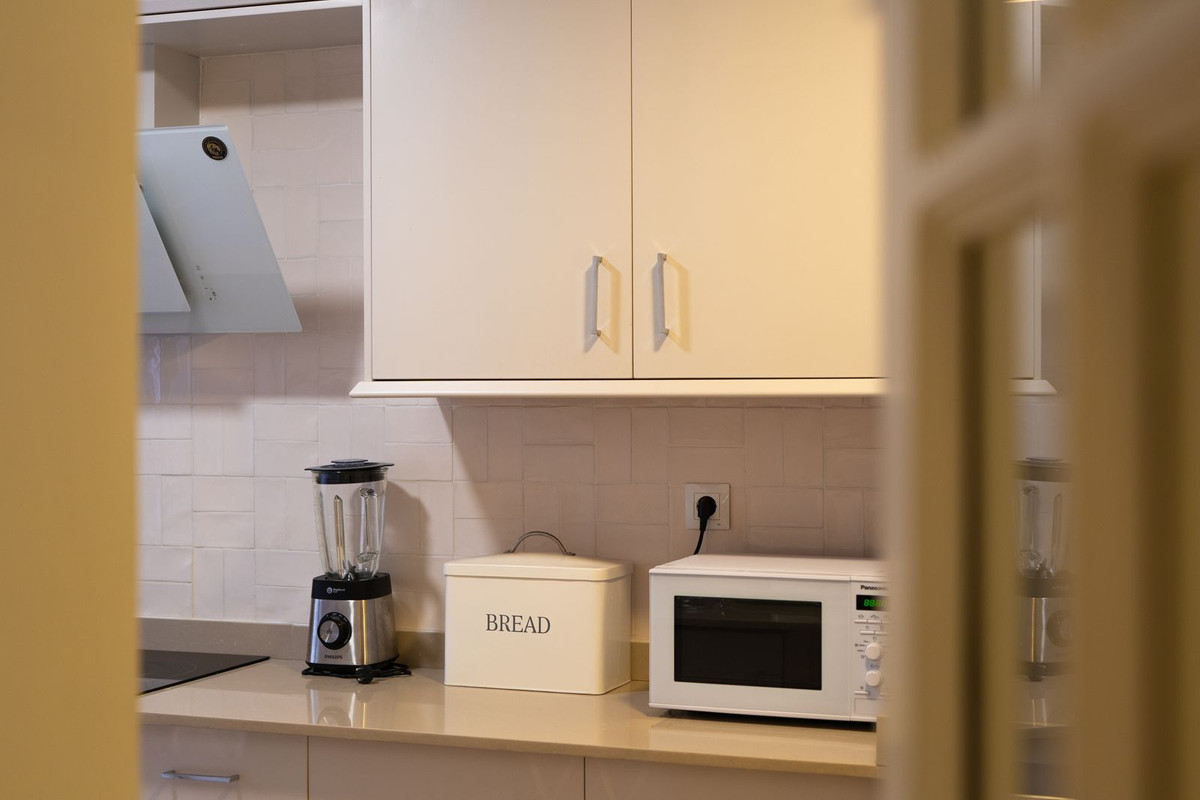 A fully equipped kitchen with high-end appliances and ample storage space.
