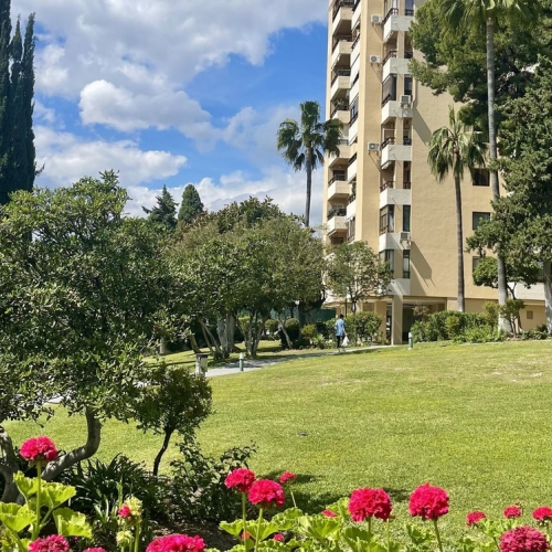 This property, located just a five-minute walk from the renowned Mistral Beach, a fifteen-minute walk from Puerto Banús, and five minutes from the San Pedro seafront promenade, offers a prime location. It is close to a variety of shops, markets, and restaurants. With a surface area of 122 square meters, the apartment is characterized by its brightness. It comprises a spacious and elegant living-dining room that opens onto a terrace, two bedrooms, two bathrooms, and a fully equipped kitchen. The separate, bright kitchen includes a laundry area with a washer/dryer and dishwasher. The master bedroom, with access to a private terrace, is spacious and features an en-suite bathroom and a wardrobe. The second bedroom, overlooking the internal garden, has a small Juliet balcony and a full bathroom. The apartment is equipped with centralized air conditioning (heating and cooling) with individual temperature controls in each room, as well as electric radiators. The price includes a parking space and a large storage room.
