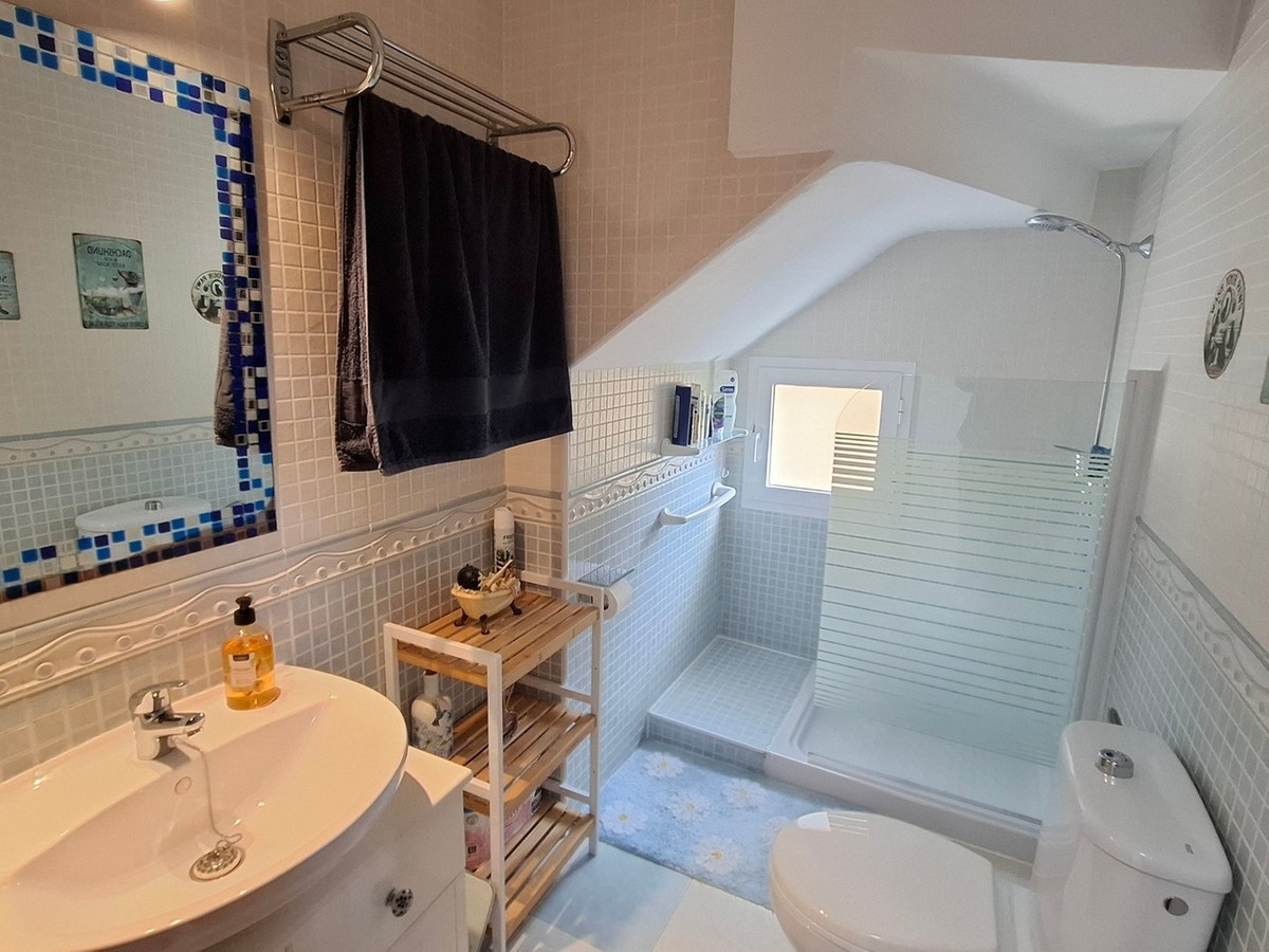 The property offers two bedrooms and two bathrooms arranged over two levels, along with a very spacious wraparound roof terrace that provides superb space for leisure, sunbathing, alfresco dining, barbecues or simply enjoying the wonderful views of the countryside, nearby mountains, communal gardens and swimming pool.
