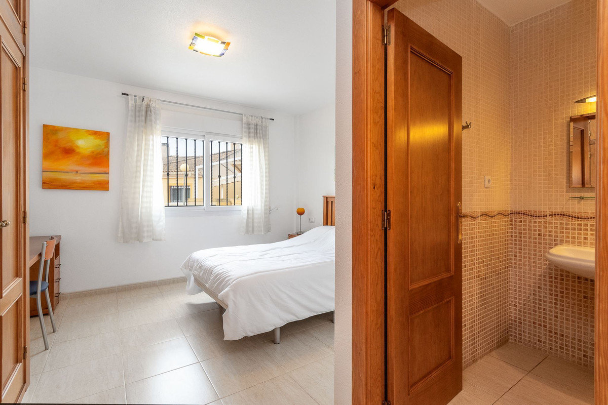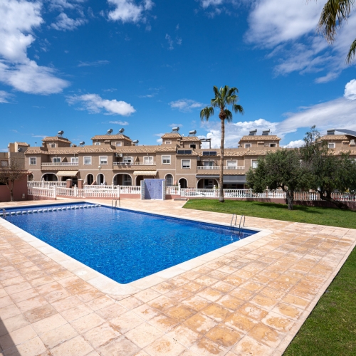 Large townhouse with shared pool area A warm welcome to the authentic La Puebla on the Costa Calida and this well-planned townhouse with a quiet location. The townhouse has an inviting feel and there are three bedrooms, two bathrooms, living room and kitchen. In addition, there is a large and spacious basement and a nice patio. In the communal area there is a swimming pool.