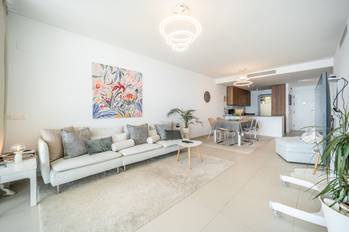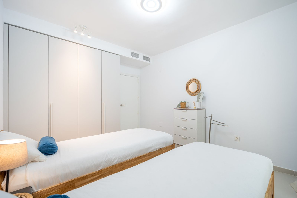 Amazing south facing apartment, located in the exclusive complex of Stupa Hills. Consists of 2 bedrooms, 2 bathrooms, open plan kitchen fully furnished and equipped with electricial appliances and access to a spacious laundry area with washing machine and dryer. Spacious living-dining room with access to a large terrace of 42m2 with sea views. Air conditioning hot and cold, video intercom, electric blinds in secondary bedroom, domotic system, pre-installation alarm system, built-in wardrobes. Includes two parking spaces and one storage room.