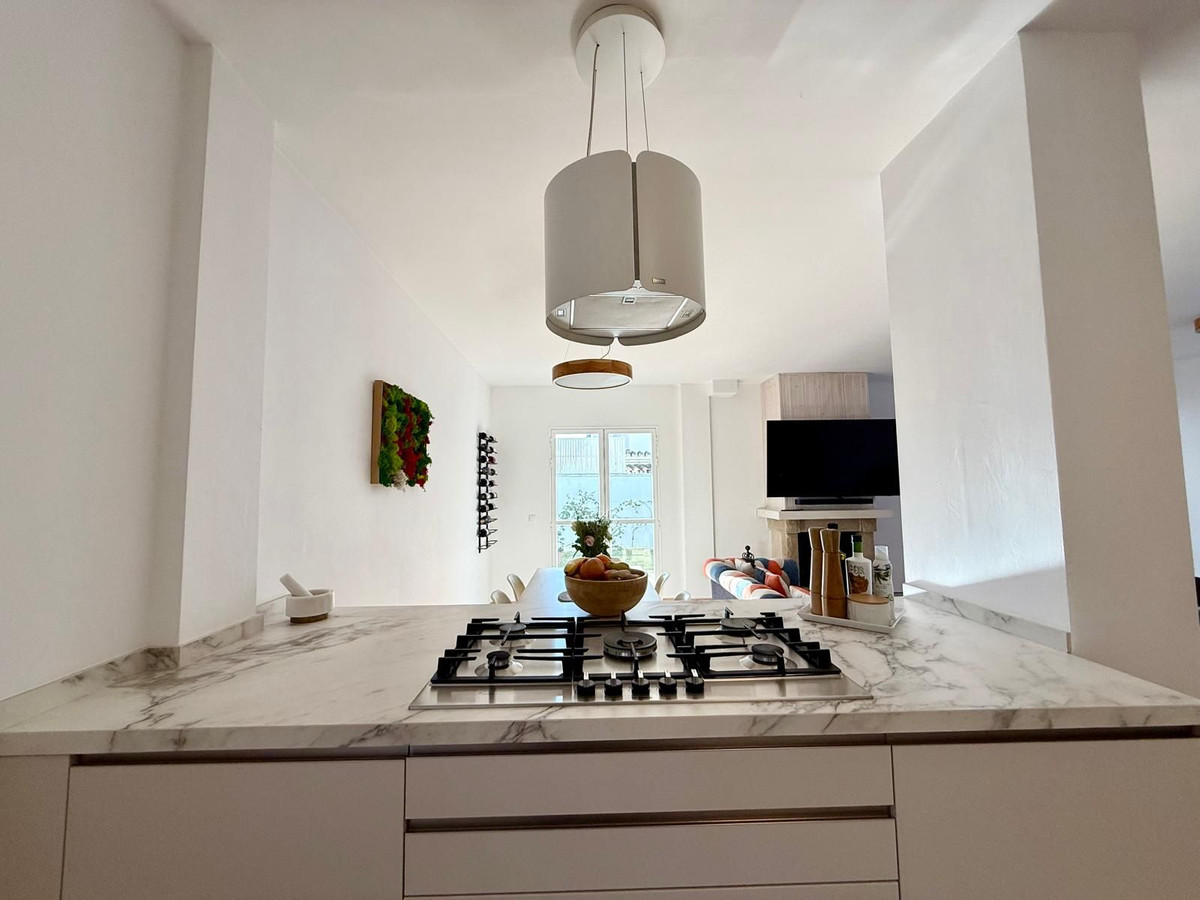 A beachside town locked against the sea because the A-7 goes around the back. New developments and 2 hotels are coming because it is "prime location" with 20 restaurants, one of the top beaches in mainland Spain, and a walk to the port of Sotogrande. People have got wise to this and are front-running what is coming. Prices are poised to accelerate upwards and this property for all you get is a great price per m2.