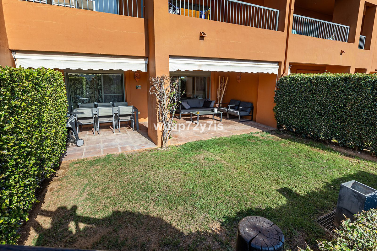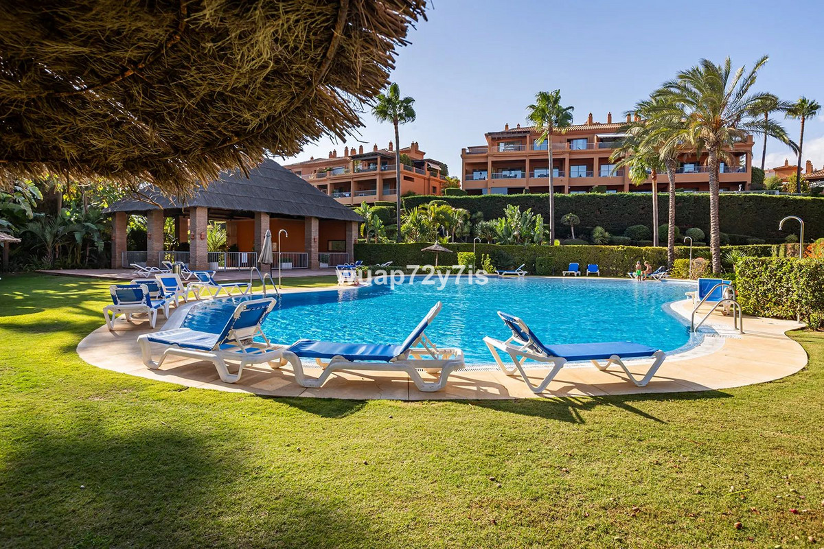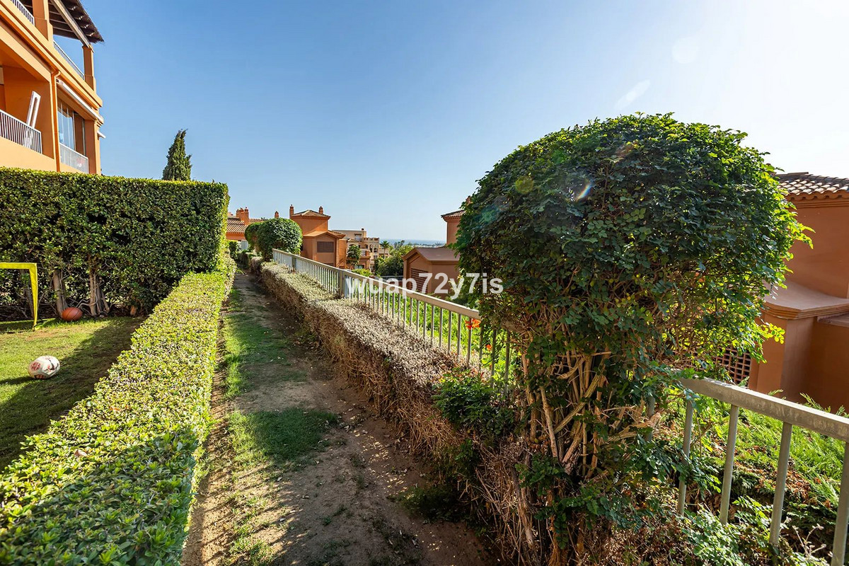 Located in the renowned Benatalaya urbanization—one of Estepona's most private and secure gated communities—this elegant ground-floor residence offers exceptional tranquility. Its corner position and secluded private garden create a peaceful haven surrounded by beautifully landscaped Mediterranean greenery.