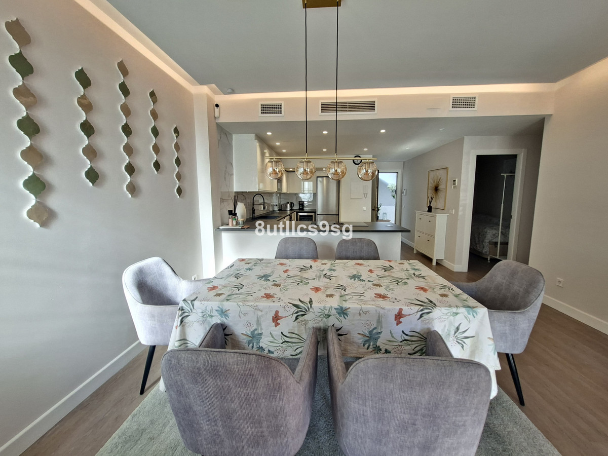 Nice & Modern corner ground floor apartment in the heart of Nueva Andalucia, Marbella, in the area of Aloha - Las Brisas, in the well-known Super manzana H. This property has been reformed recently this year 2025, and it's located in a gated community and has 3 bedrooms and 2 bathrooms, one of them en suite, a large living room with fireplace, good size fully equipped kitchen and terrace overlooking the common gardens. The apartment has central air conditioning in all rooms and one numbered uncovered parking space inside the complex.