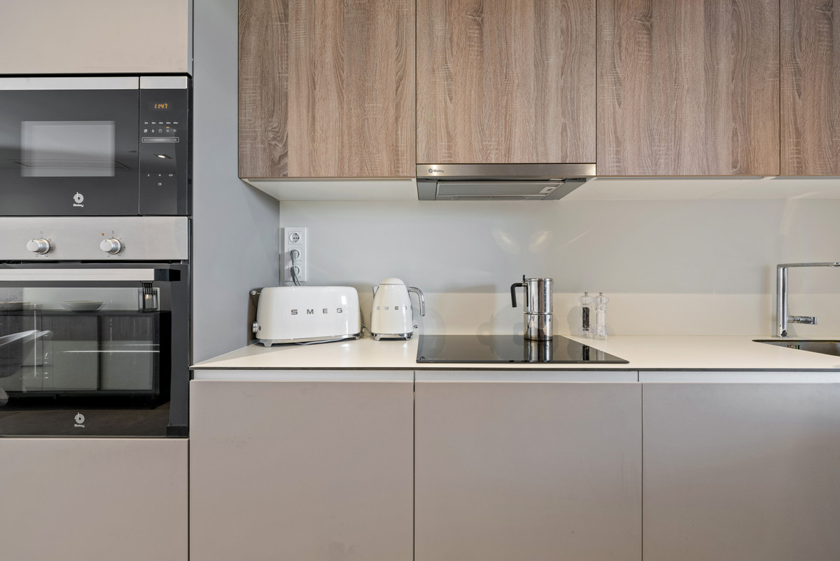 There are two bedrooms and two bathrooms. The principal bedroom includes an en-suite shower room and has direct access to the terrace. The second bedroom is served by a separate bathroom. Both bedrooms have air conditioning.