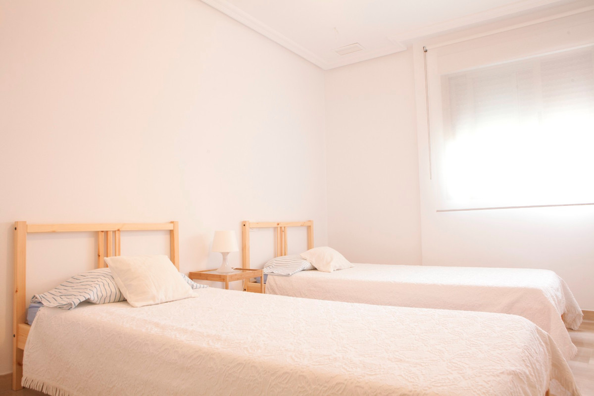 The property offers four double bedrooms , one of which is en suite , along with two modern bathrooms . The living-dining room , exceptionally bright thanks to its corner location, creates a perfect atmosphere for everyday living. The apartment includes a separate, practical, and well-organized kitchen , as well as a private balcony that adds a convenient outdoor space . Air conditioning is also installed, providing greater comfort year-round. The apartment features a distinctive entrance hall that creates a warm and inviting entrance. It also includes a private 4 m² storage room located on the top floor of the building. The building, comprising only 9 apartments , enjoys an exceptional location between Muelle and Cervantes streets, very close to Plaza de la Glorieta , the Castle-Fortress , and the port. The area offers excellent connections to Alicante Airport (just 7 km away) and other cities such as Elche and Alicante , making this property a very versatile option for both living and investing.\n
