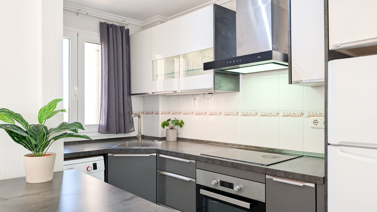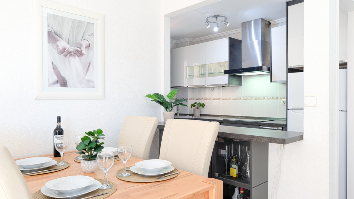 The apartment is sold furnished, including all kitchenware, beds, TV, outdoor furniture, etc.