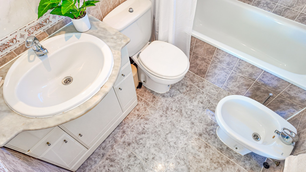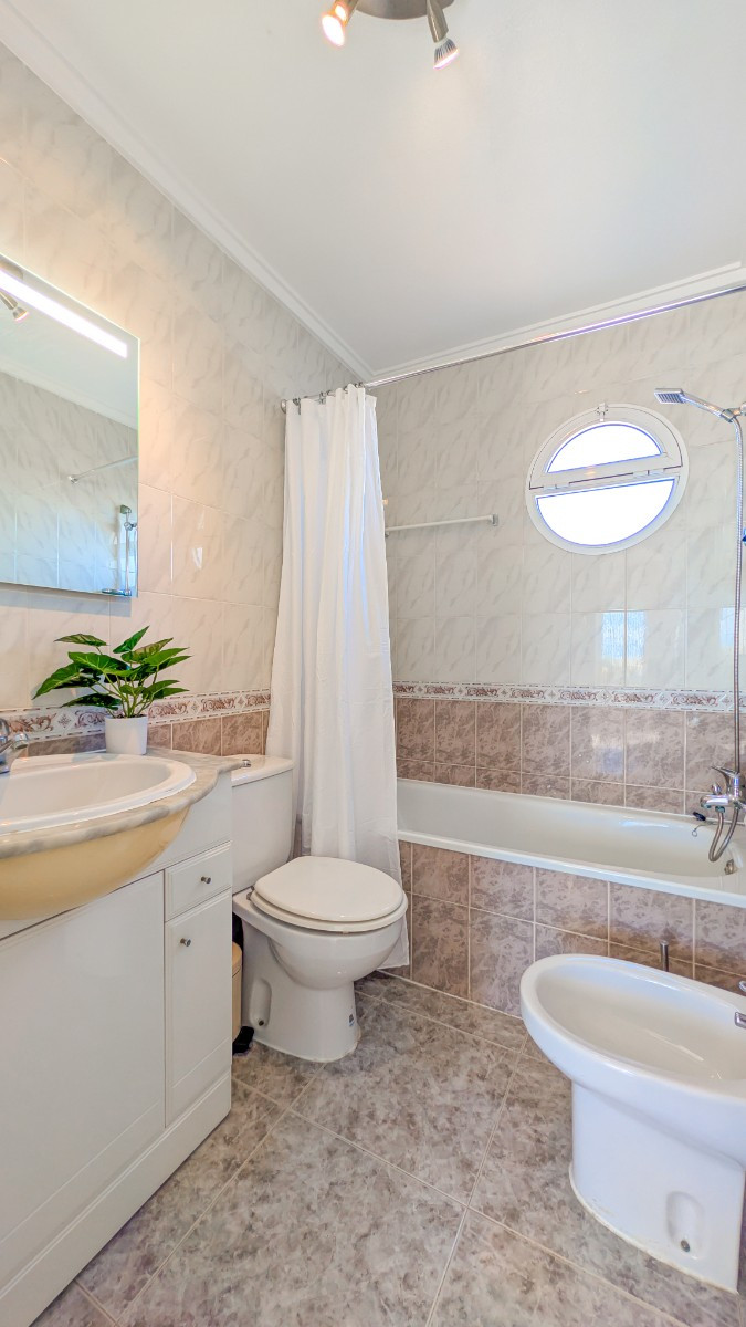 Adjacent to the master bedroom is an en-suite bathroom with washing machine, shower and WC, renovated in 2020. The other bedrooms are located next to a second bathroom in good condition, with a bathtub and WC.