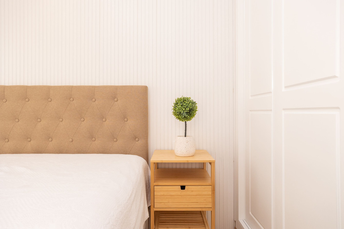 Three bedrooms with quiet locations and pleasant light, two furnished with double beds and one furnished with two single beds.