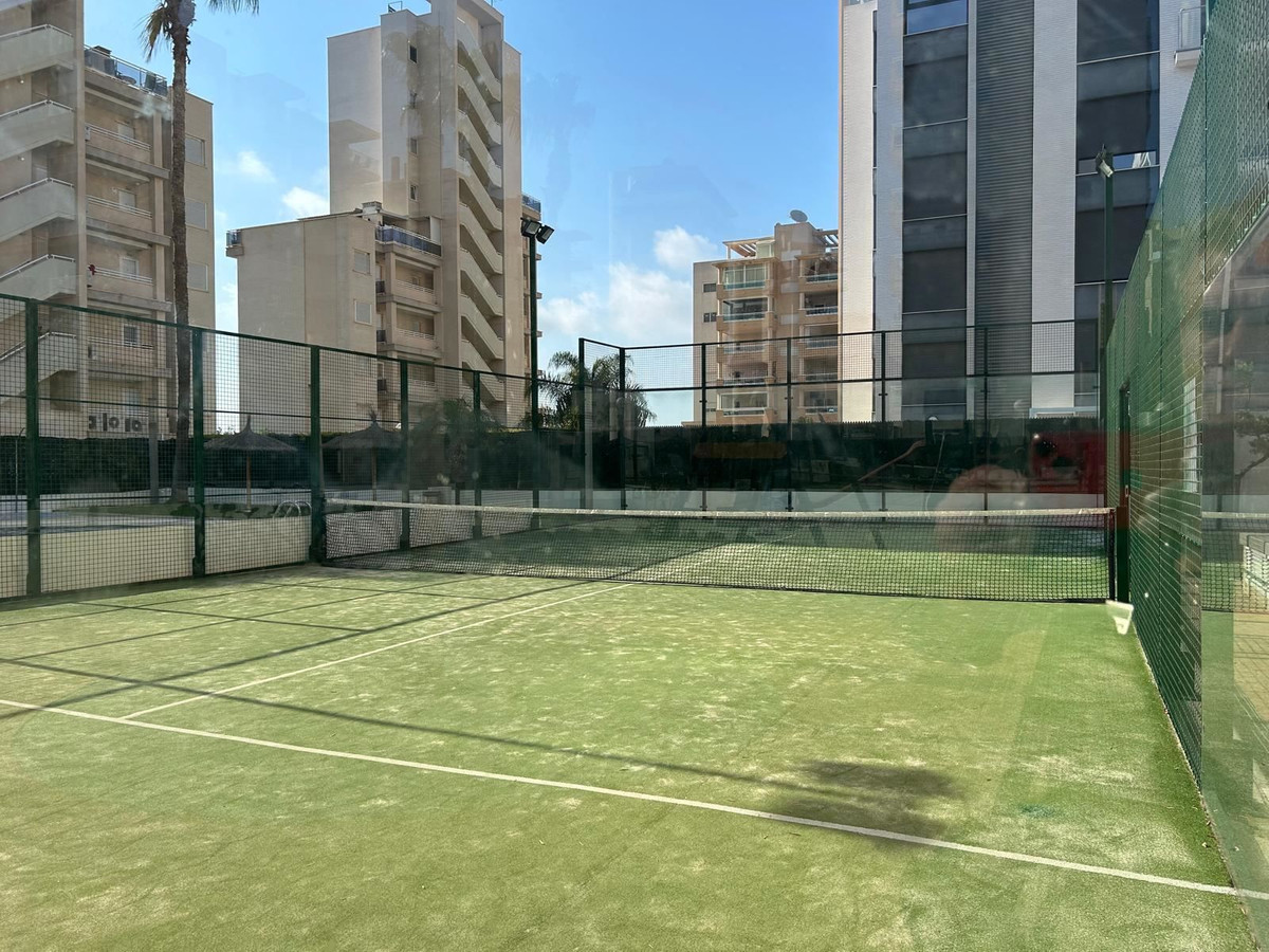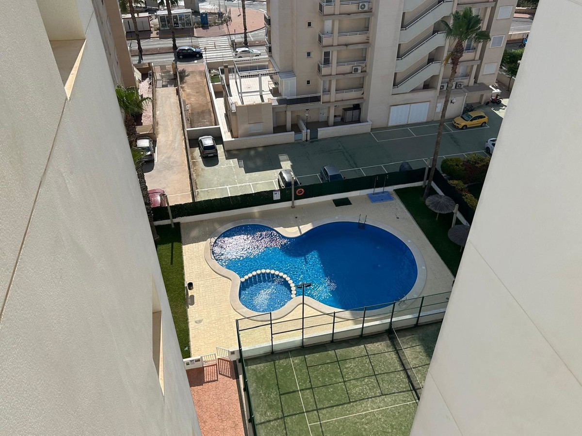 Apartment with terrace, shared pool and paddle court. Warm welcome to this well-kept and nice apartment located in Guardamar del Segura. The apartment is about 70 square meters and consists of two bedrooms, a bathroom and a living room and kitchen in an open plan. The apartment is located on the eighth floor and there is an elevator in the building.