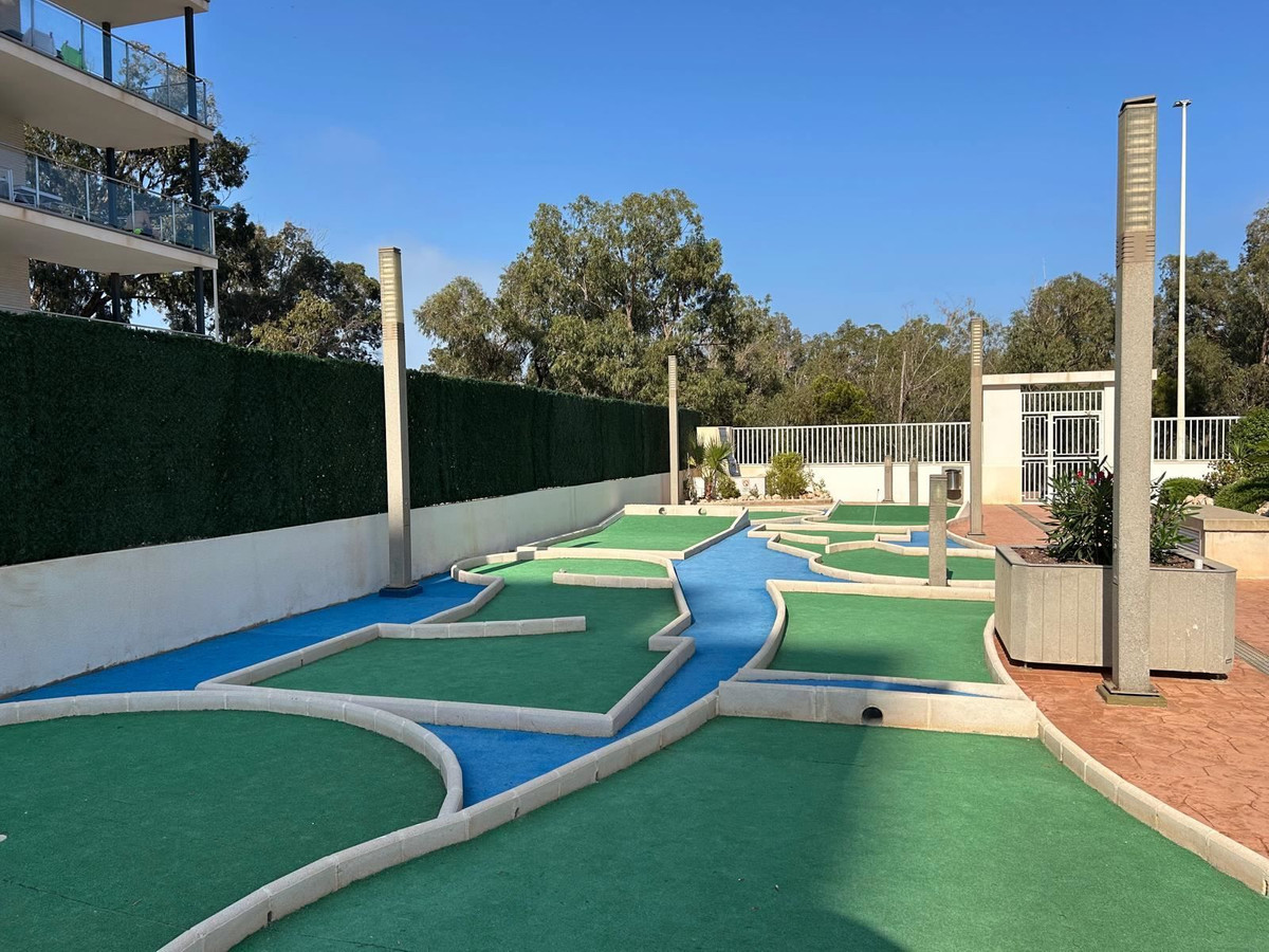 Common area with pool, paddle court, playground and barbecue. The apartment has two garage spaces.