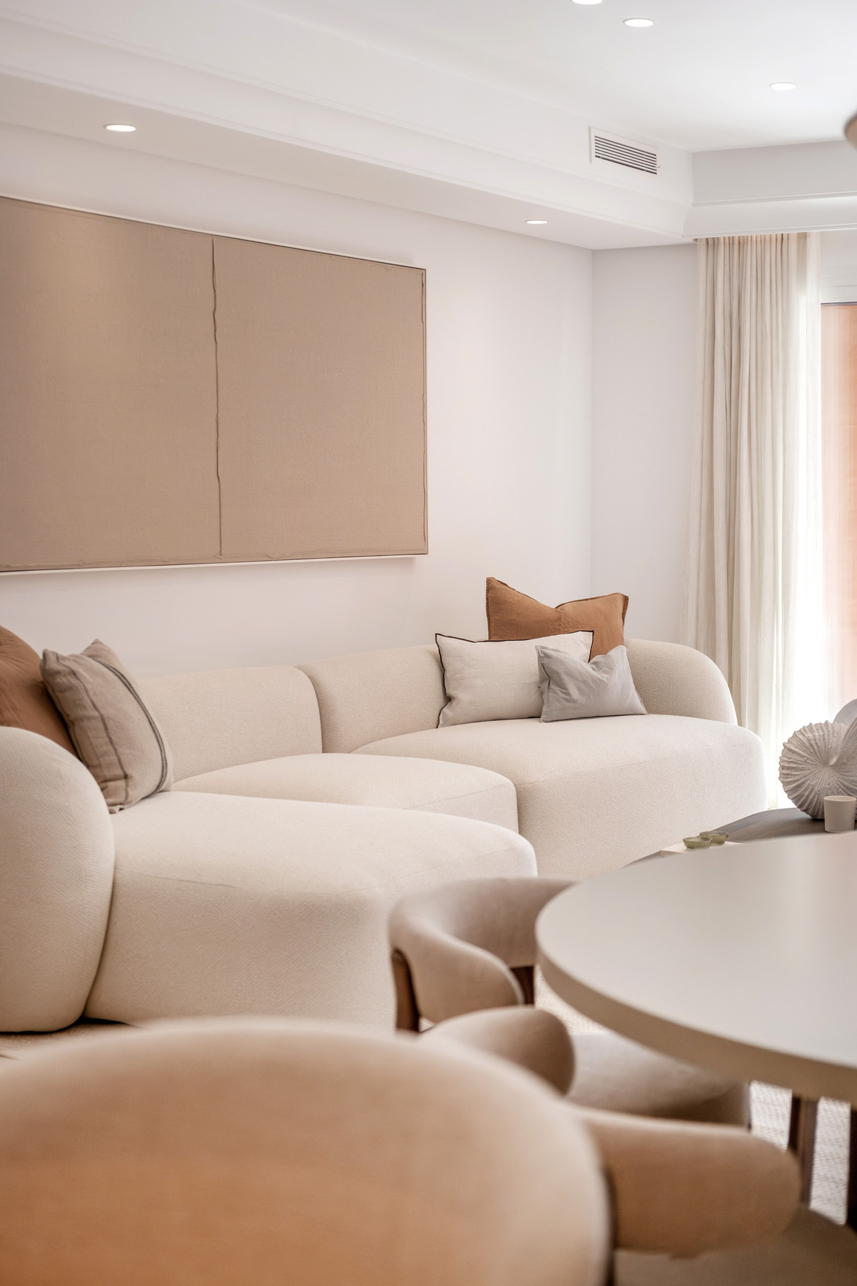 Altos de Puente Romano 3 is a beautifully reimagined 4-bedroom residence, fully renovated in 2025 with bespoke carpentry, a custom-designed kitchen with Miele appliances, and elegant contemporary finishes throughout. Located in one of the most exclusive gated communities on the Golden Mile, the property offers an exceptional standard of modern Mediterranean living. Every room is equipped with Airzone climate control and the bathrooms feature underfloor heating, ensuring year-round comfort.