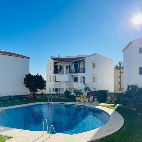 The ground floor flat, which is both spacious and well-maintained, is located within a secure, family-friendly gated community situated in close proximity to the Miraflores Golf Club.