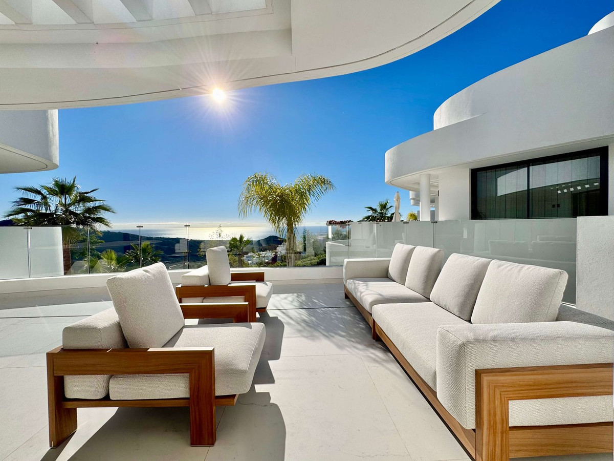 The apartment is located in Granados, one of the most prestigious residences within the luxurious Palo Alto estate, nestled against the green hills of Ojén, just above Marbella. Here, you live in complete tranquility, surrounded by nature and overlooking panoramic views of the Mediterranean Sea. This move-in-ready apartment is ideal for anyone seeking comfort, design, and a carefree lifestyle under the Costa del Sol sun.