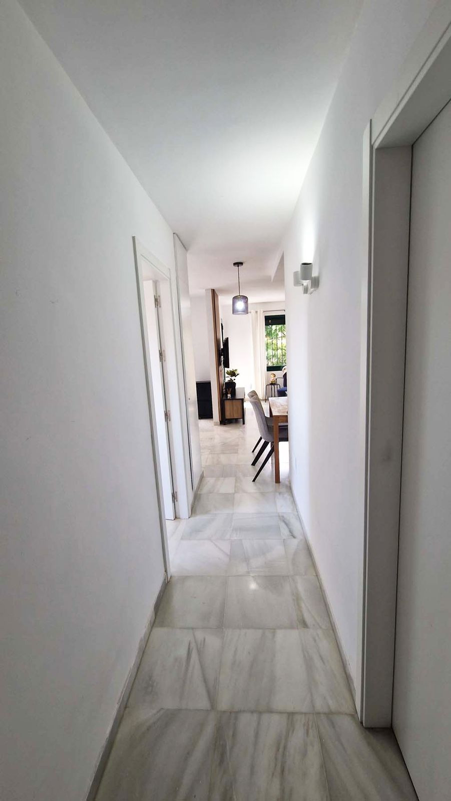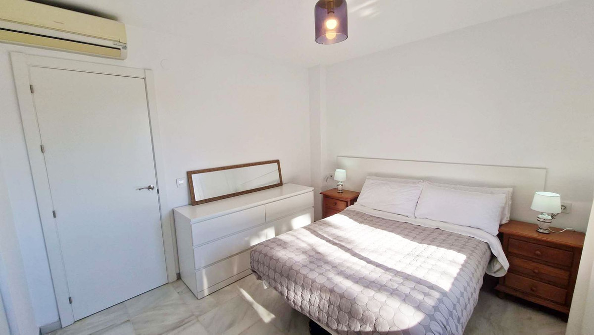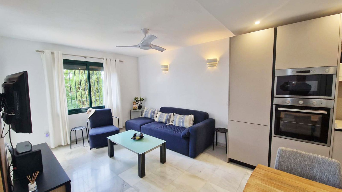 Fantastic location! By Paloma Park, fantastic apartment, totally very tastefully refurnished recently. Originally, it was a 2 bedroom apartment which has been converted in a 1 bedroom. It would be very easy to converted it back to the way it was by adding a sliding door or doble doors. It is located in a charming well kept Andalusian style complex, with 2 swimming pools, well maintained gardens. 7 minutes walk to the center of Arroyo de la Miel and the train station, 7 minutes walk to the Benalmadena beaches, promenade, beach bars etc.. Shops, public transports, all the amenities are very close. The property consist of a hall way with a storage cupboard, a full bathroom with a window, a large bedroom with fitted wardrobes. Beautiful open plan kitchen, large lounge with opens to a large 15m2 west orientated terrace . La vivienda se vende totalemente amueblada.The property is sold fully furnished, to a high standart. Very quiet environment, yet close to everything. Malaga airport 15 minutes by car.
