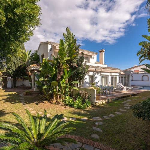 This iconic villa is located in the private urbanization of Marbesa, close to the beach, on the east side of Marbella. It is 400 meters walking distance or 10 minutes walk from the Mediterranean Sea and the beach, 1.5 km from the beach and the protected dunes of Cabopino and 1.9 km from the hotels Marriot and Don Carlos and Nikki Beach Marbella. Marbesa is a quiet and prestigious neighborhoud known for its beautiful coastline and its proximity to Marbella.