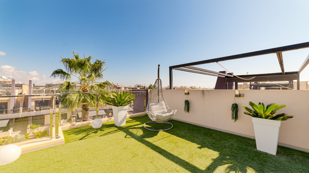 The Property has a front terrace with nice view to the community swimming pool, cozy living area with open kitchen , 2 bedrooms, 2 bathrooms and a roof solarium with the BBQ area and sea views. The residential complex has a shared swimming pool, lounge areas ...
