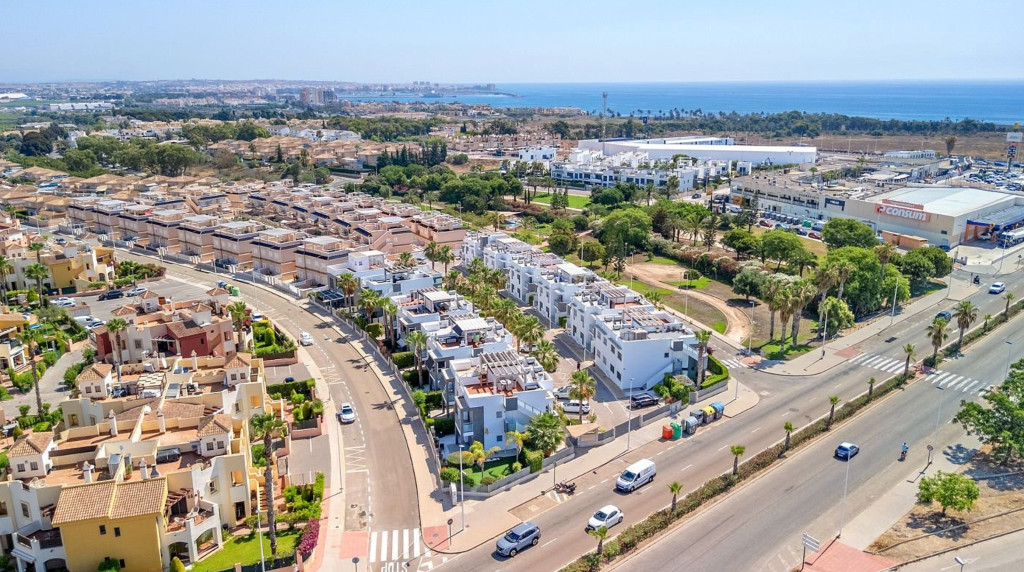 For sale is a charming bungalow located on the top floor in the desirable area of Punta Prima, in the gated community "Amay". This resale property offers 65 m² of well-designed internal space, featuring 2 cozy bedrooms and 2 modern bathrooms.The apartment is equipped with ducted air conditioning for both cooling and heating, ensuring comfort in every season.