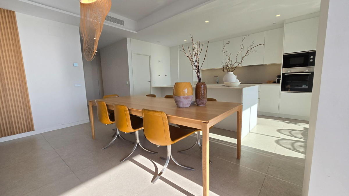 Enjoy the ultimate coastal experience in this luxurious three-bedroom, three-bathroom apartment located in the prestigious Nereidas urbanization, facing the Mediterranean Sea. This exclusive property combines contemporary design with high-end finishes, spacious and bright spaces, and stunning panoramic views that envelop every room with elegance and comfort.