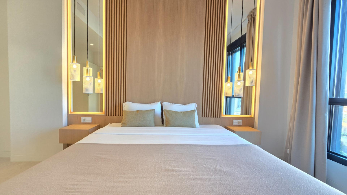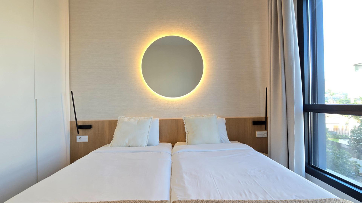 The open-plan living and dining room integrate with a large private terrace from where you can enjoy unbeatable views of the Mediterranean and unforgettable sunsets. The designer kitchen, equipped with state-of-the-art appliances, quartz countertops, and elegant furniture, provides both style and functionality. The apartment also offers a private balcony ideal for outdoor dining, central air conditioning, and smart home features.