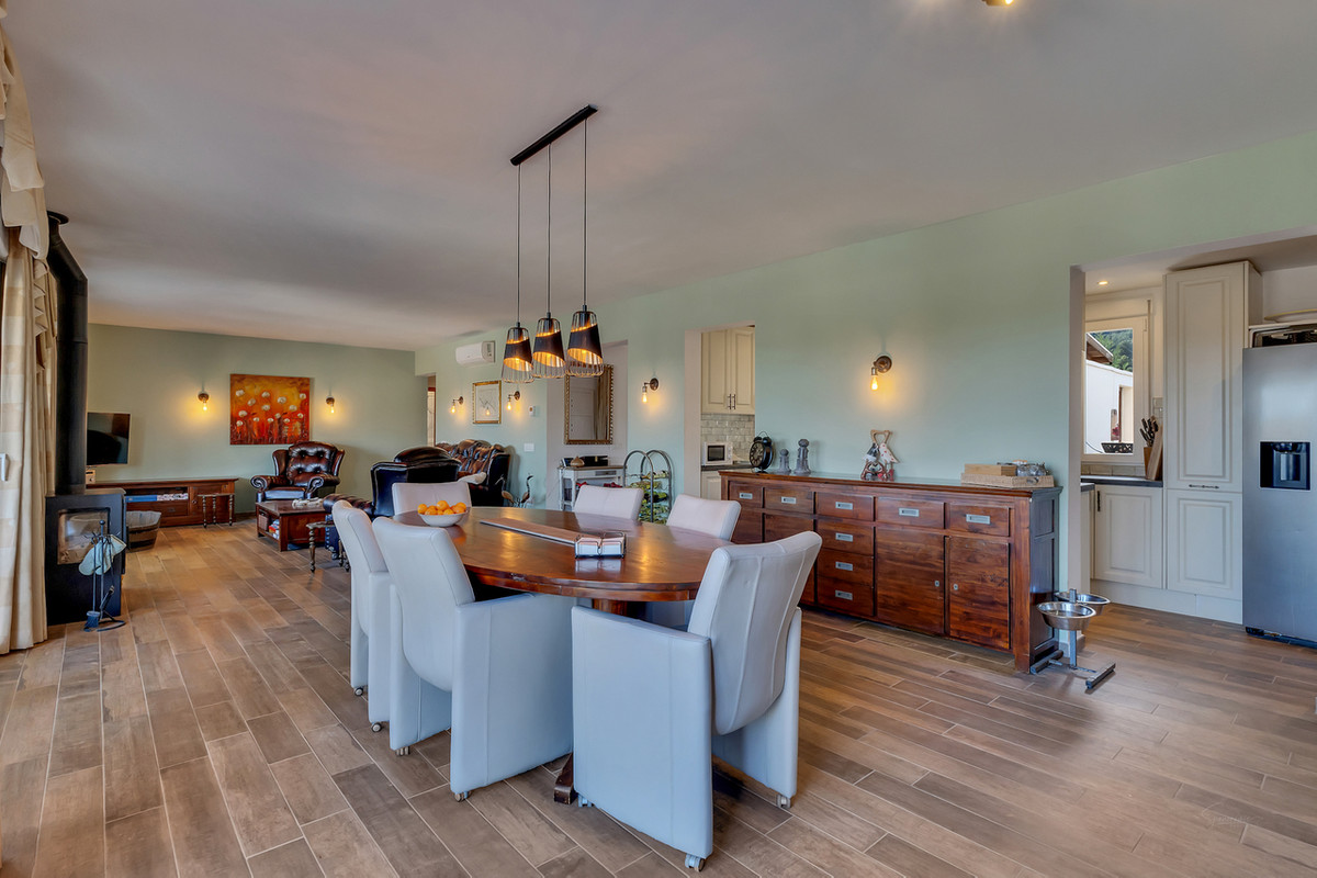 Exterior- private parking to the house, further parking for guests and 2 bays for mobile homes with electric and water supply, olive orchard, kitchen garden, terraces, covered outdoor kitchen with lounge and dining space, workshop/garage, sauna, jacuzzi, swimming pool with efficient cleaning system, sun terraces, childrens activity areas, ambient lighting, Mediterranean palms and gardens.