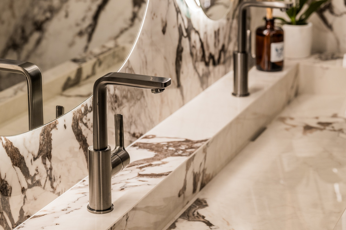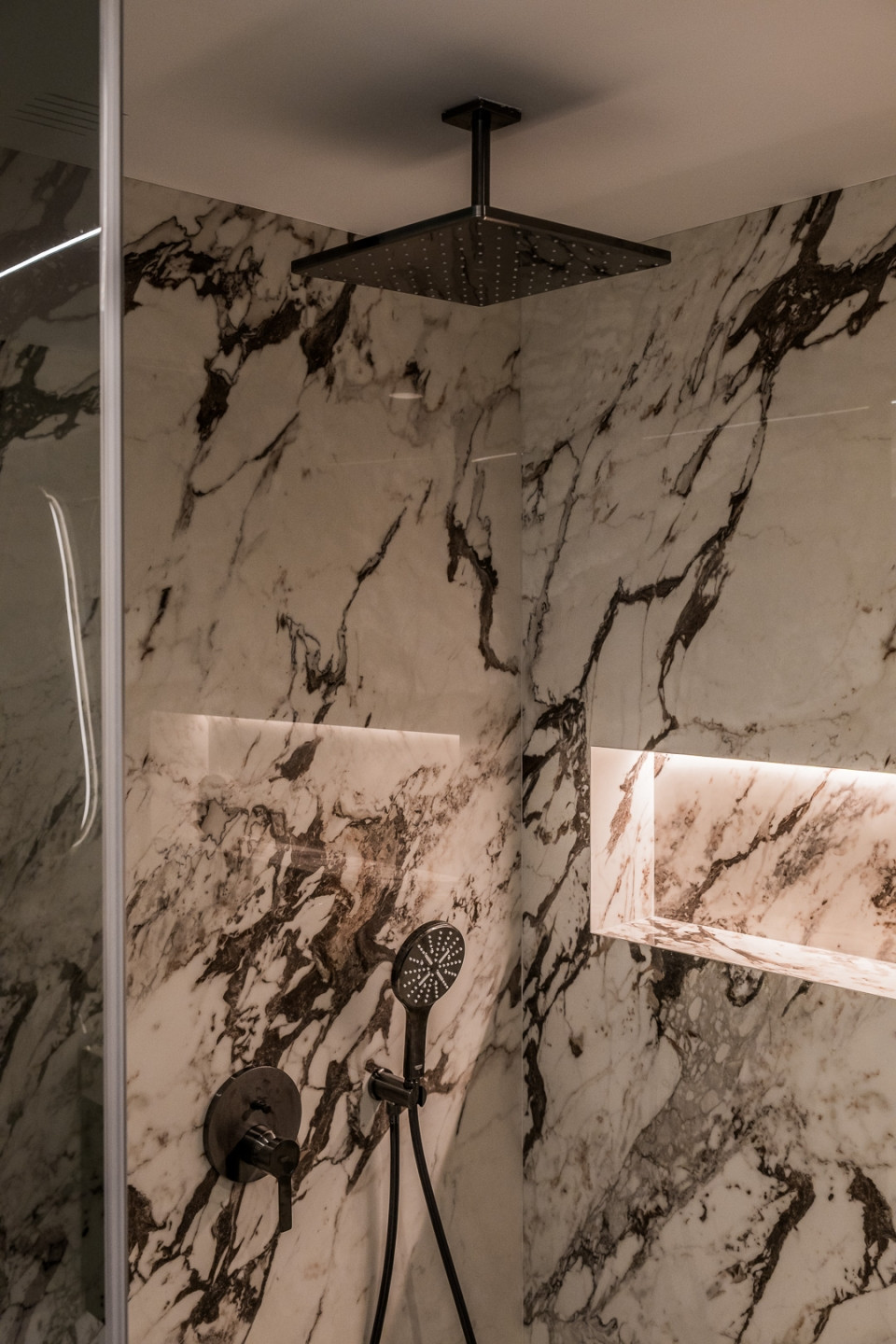 Every detail of the apartment has been carefully designed, from the state-of-the-art Bang & Olufsen sound system and the electric fireplace in the living room, to the custom-made wardrobes and the elegant freestanding bathtub.